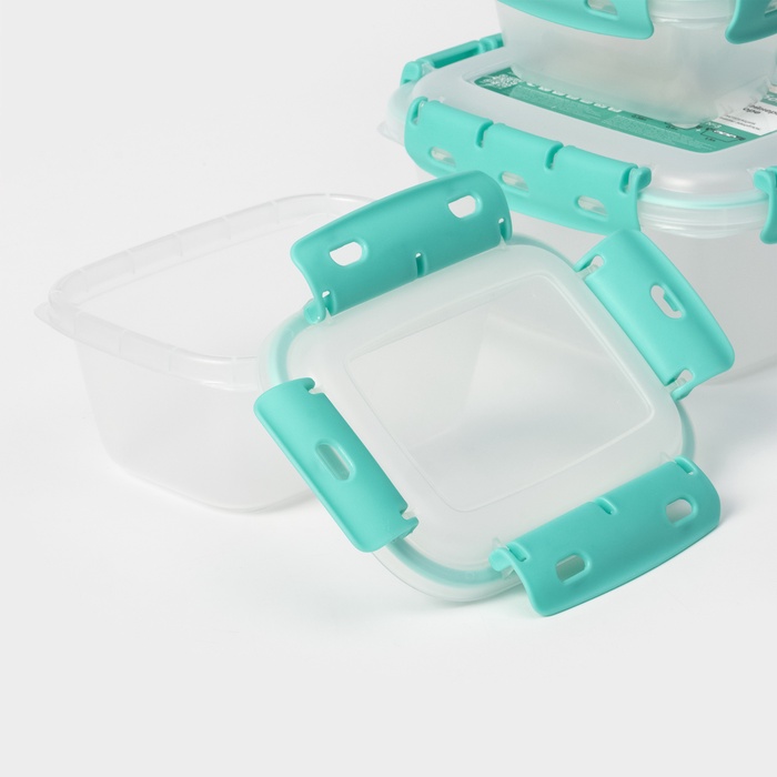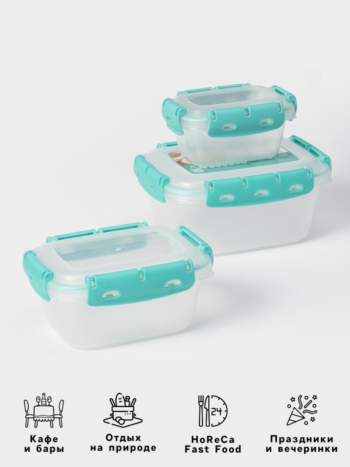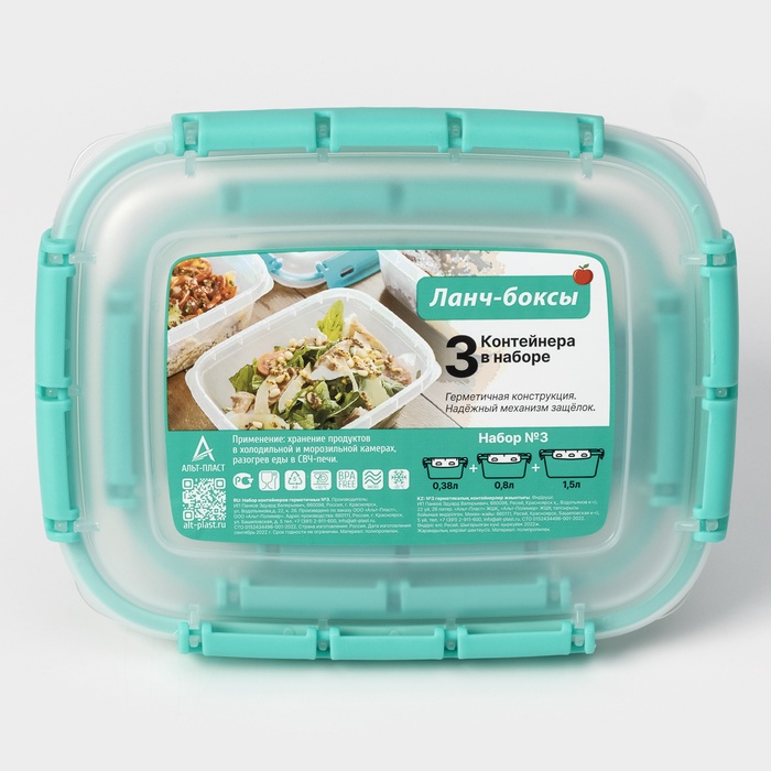 Набор пищевых герметичных контейнеров Альт-Пласт, 3 шт.: 380 мл, 0.8 л, 1.5 л, прозрачные, крышка голубая