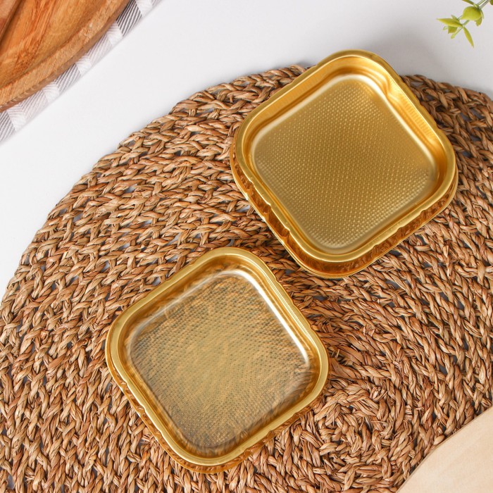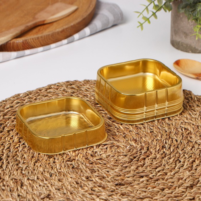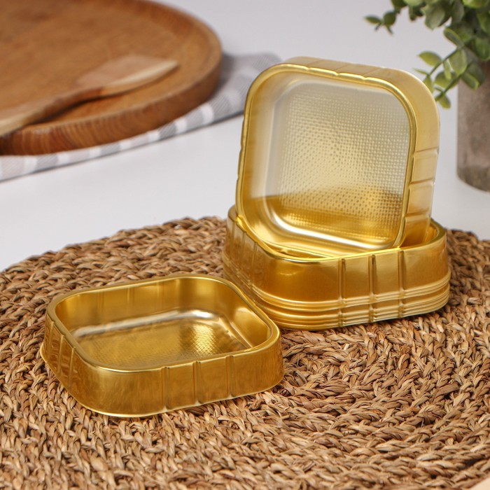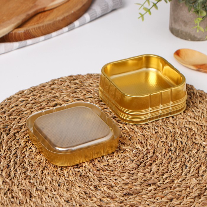 Набор состоит из 10 прочных пластиковых контейнеров золотистого цвета, которые имеют квадратную форму и удобный размер.
