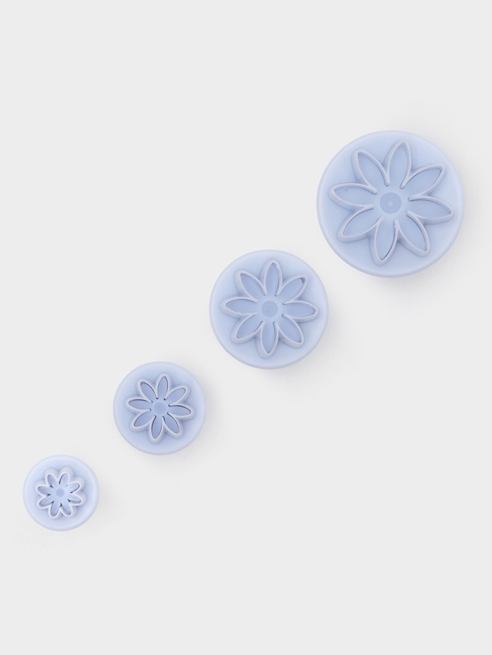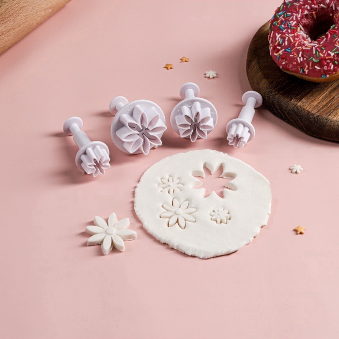 Набор кондитерских плунжеров «Гербера» — простой способ добавить цветочного шарма домашней выпечке. Четыре размера (от 2 до 4,1 см) позволяют создавать как миниатюрные акценты, так и выразительные декоративные элементы из мастики, марципана или теста. Белый пластик легко очищается вручную и не оставляет следов на материалах.