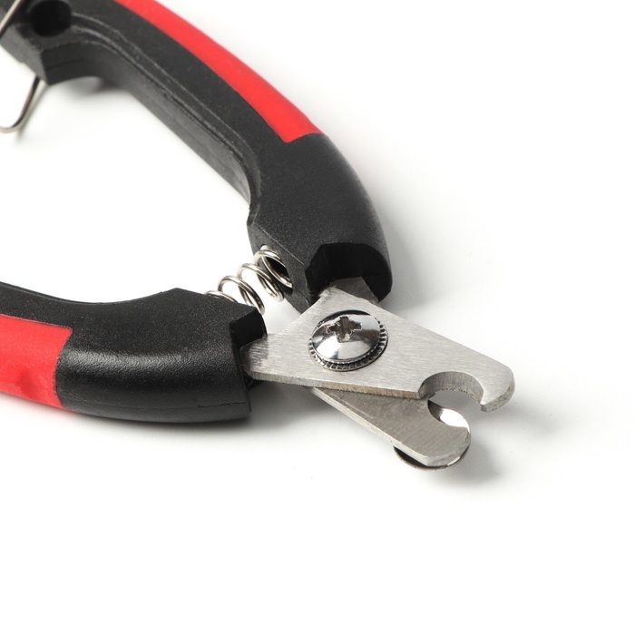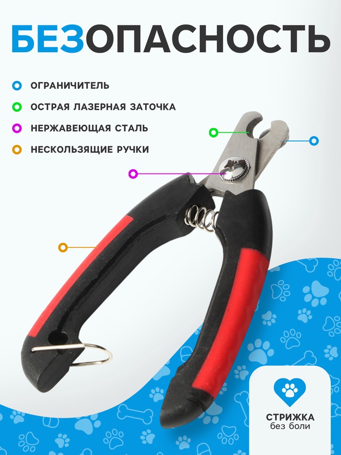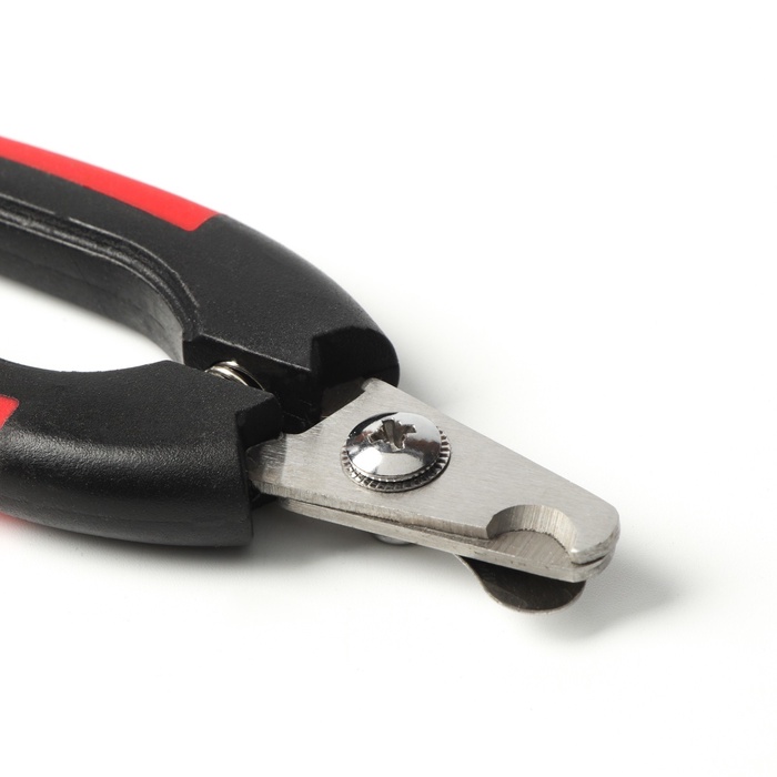 - Боковой когтерез с отверстием 9 мм: Подходит для тонких и средних когтей. Лезвие подходит сбоку, что удобно при работе с загнутыми когтями. Ограничитель не даёт перерезать живое – безопасность даже при резком движении питомца.