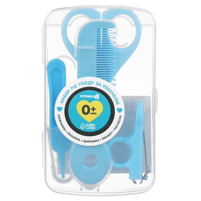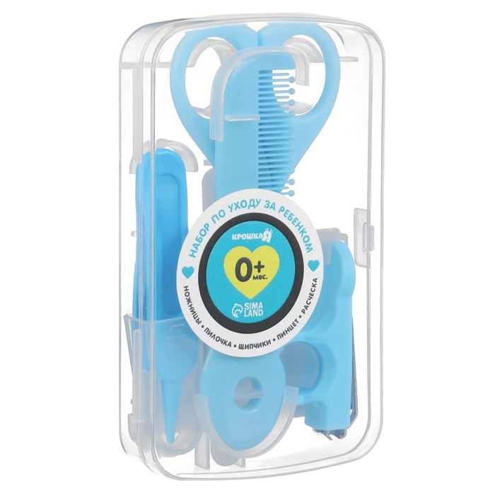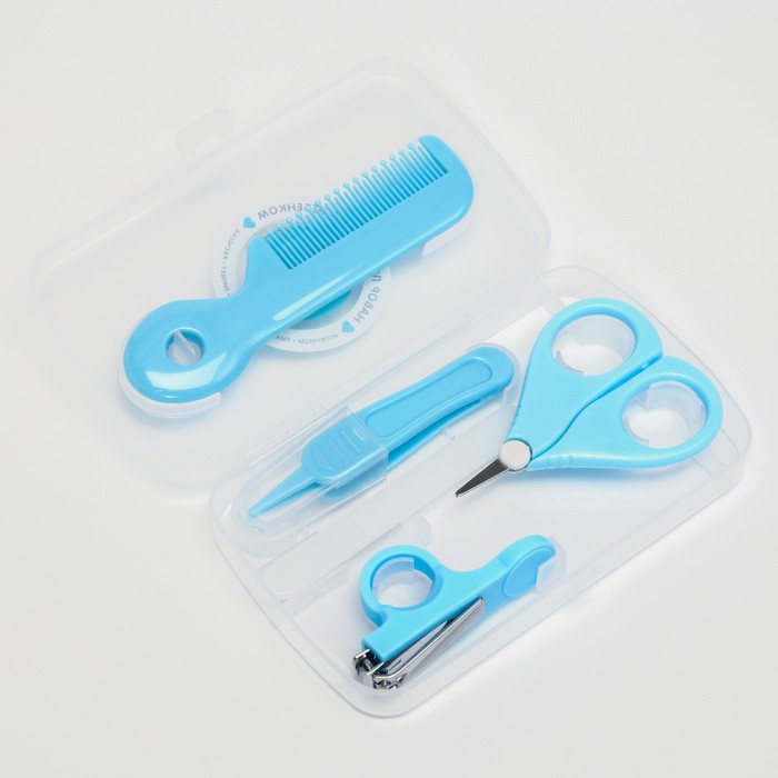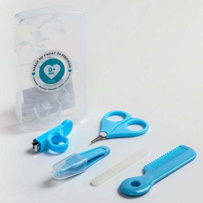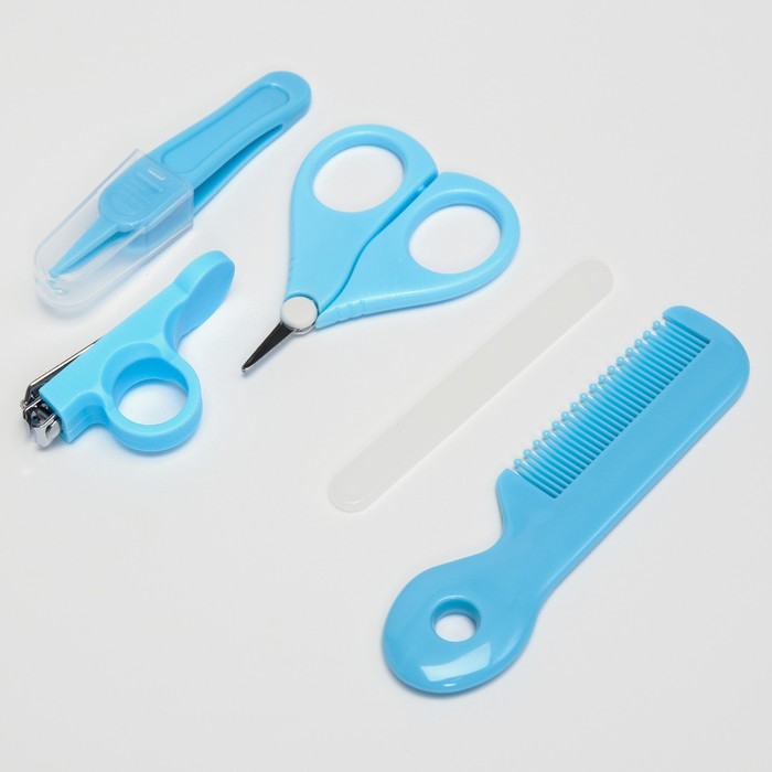 Набор по уходу за ребенком, 5 предметов: расческа, пинцет, ножницы, книпсер, пилка, голубой