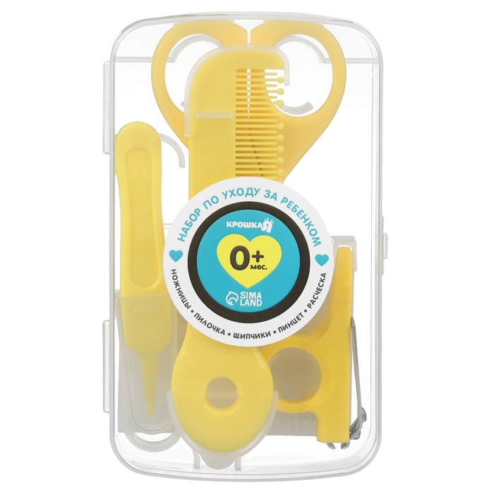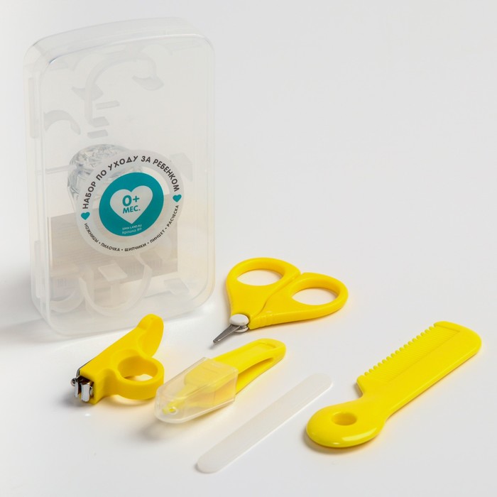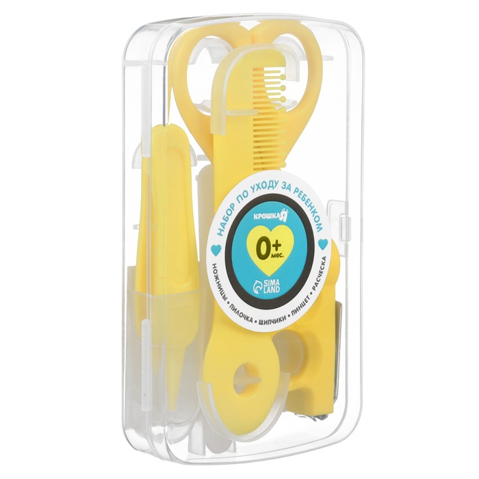 Набор по уходу за ребенком Крошка Я, 5 предметов - расческа, пинцет, ножницы, книпсер, пилка, желтый