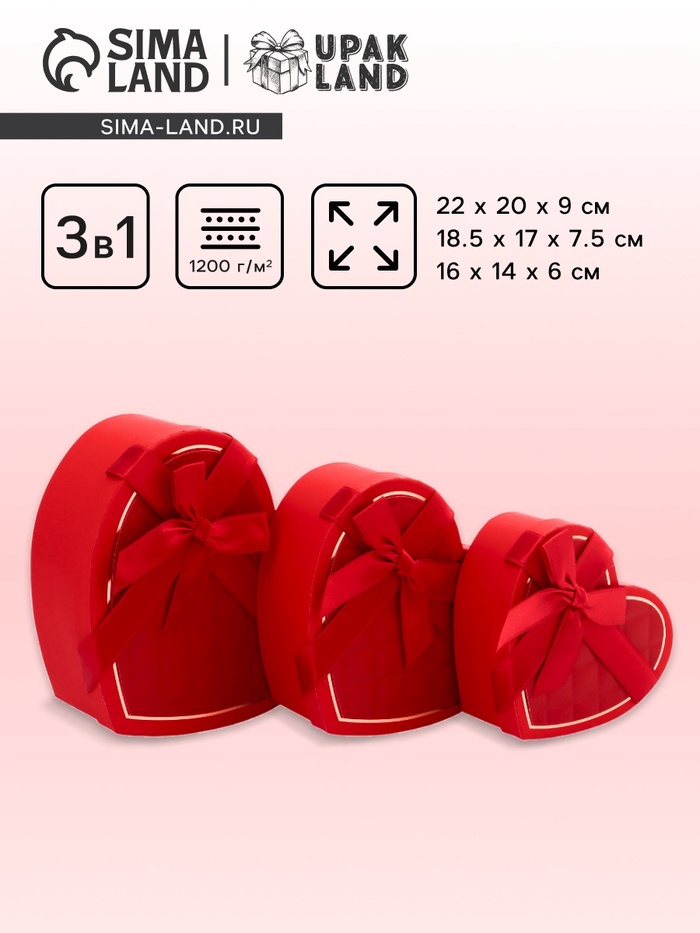 Набор подарочных коробок сердце 3 в 1, 22×20×9; 18.5×17×7.5; 1 6×14×6 см