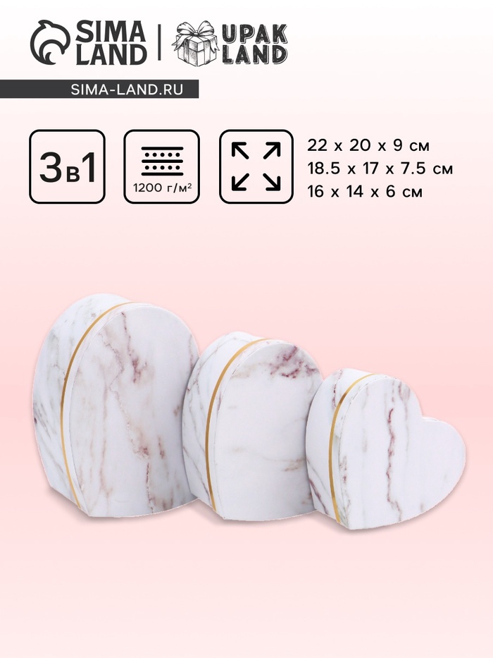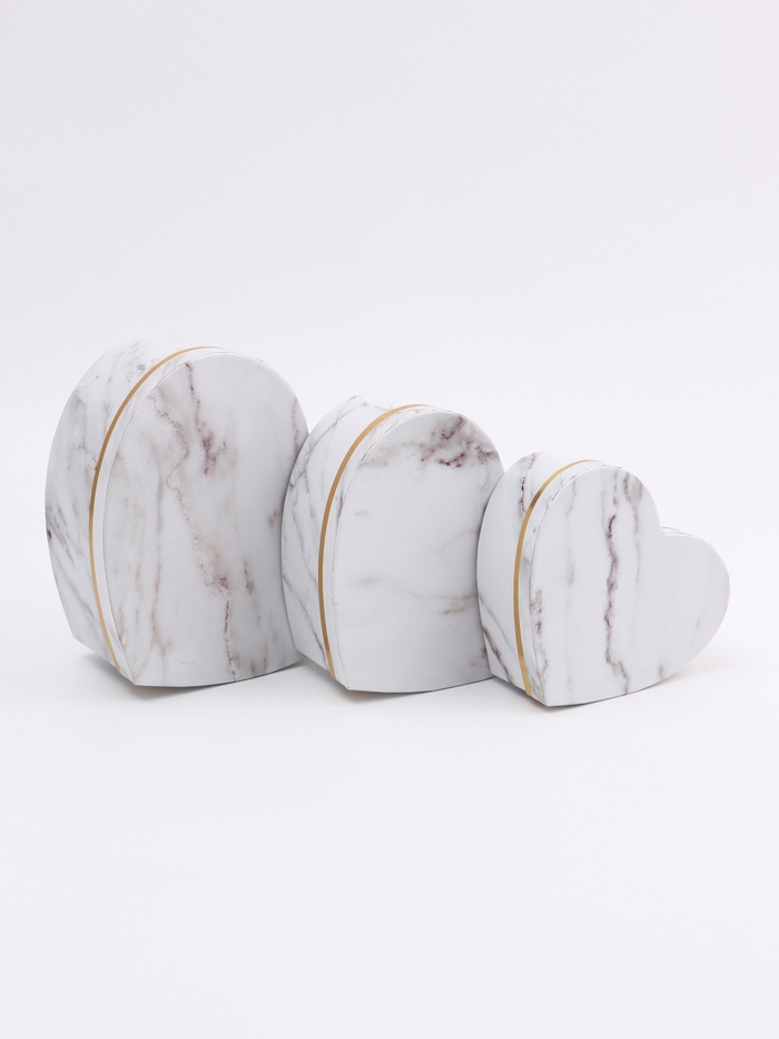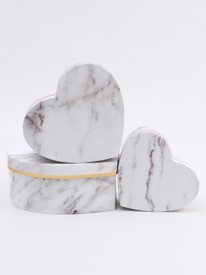 Набор подарочных коробок сердце 3 в 1, белый мрамор, 22×20×9; 18.5×17×7.5; 16×14×6 см