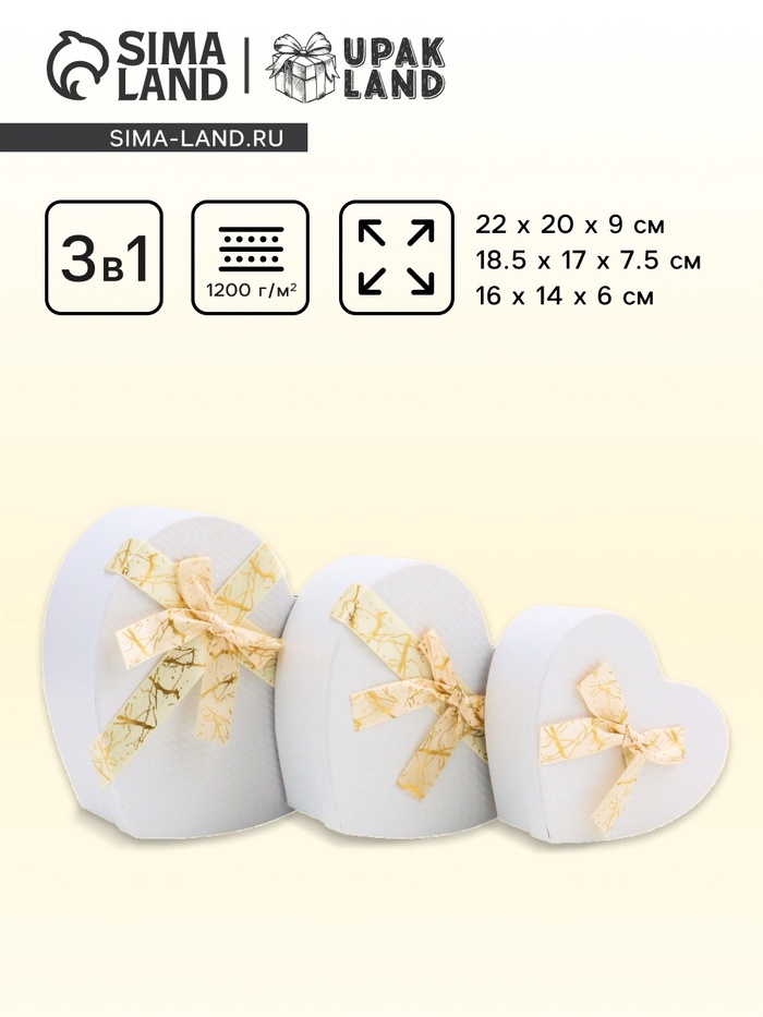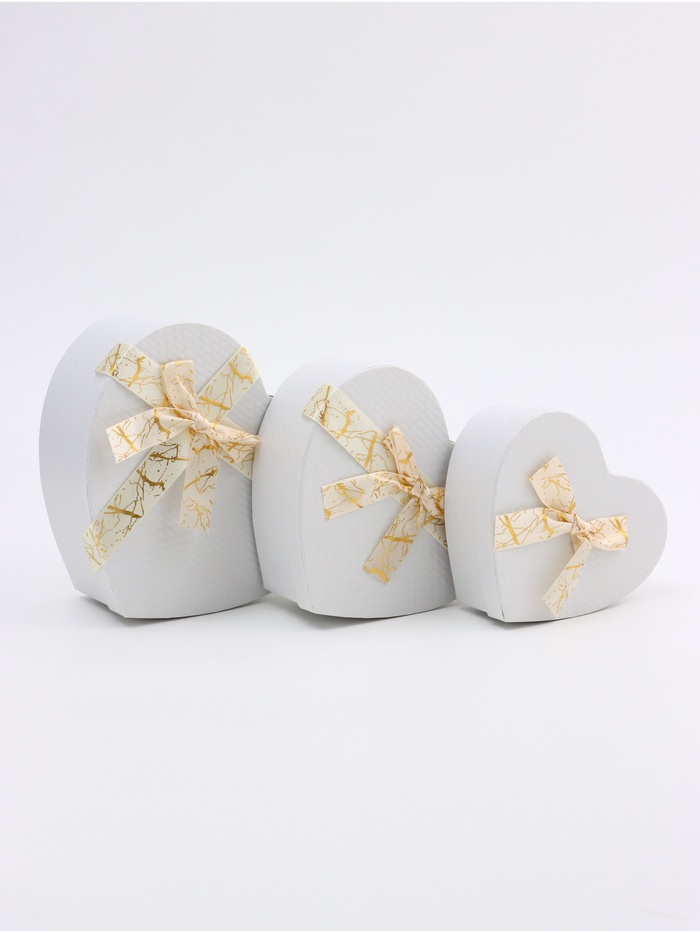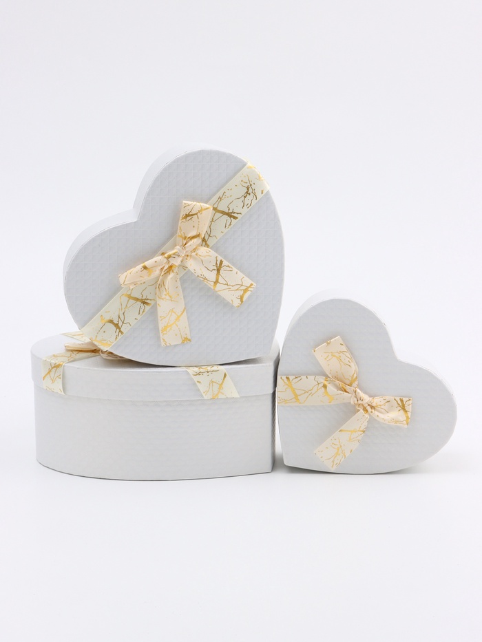 Набор подарочных коробок сердце 3 в 1, белый с бантом, 22×20×9; 18.5×17×7.5; 16×14×6 см