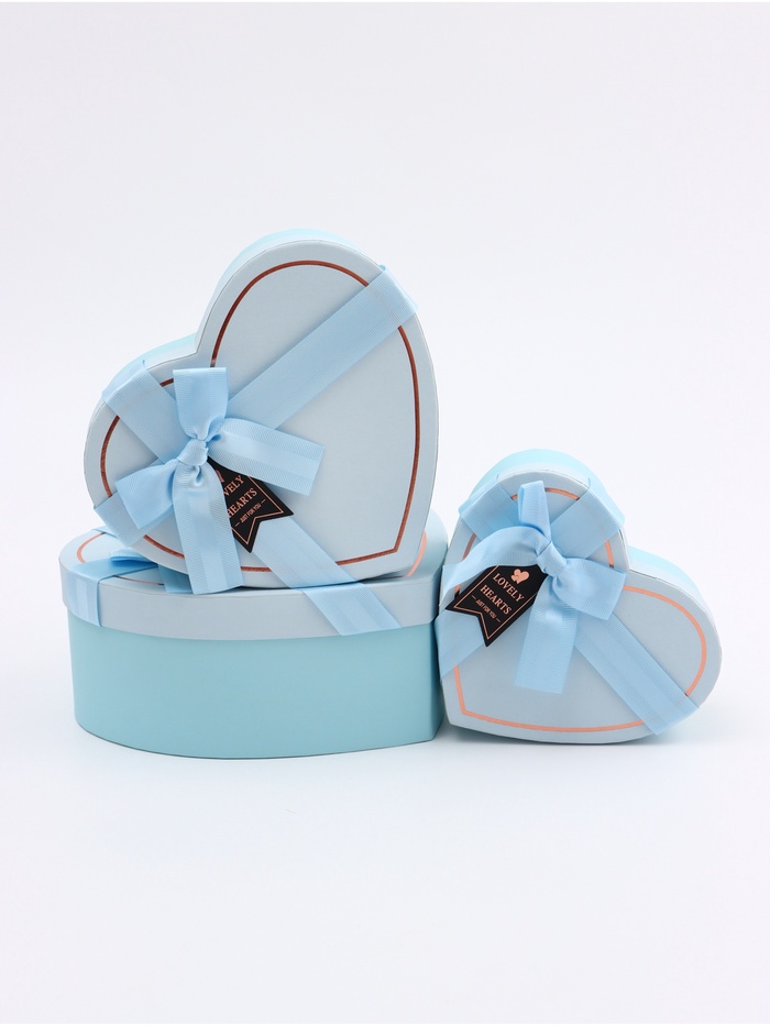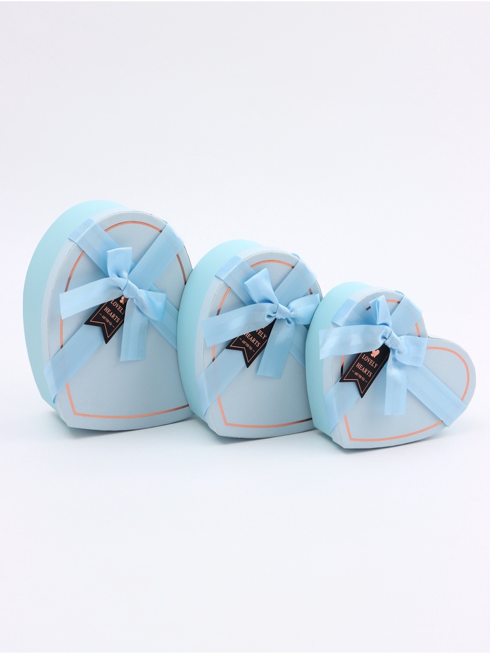 Набор подарочных коробок сердце 3 в 1, голубой с бантом, 22×20×9; 18.5×17×7.5; 16×14×6 см