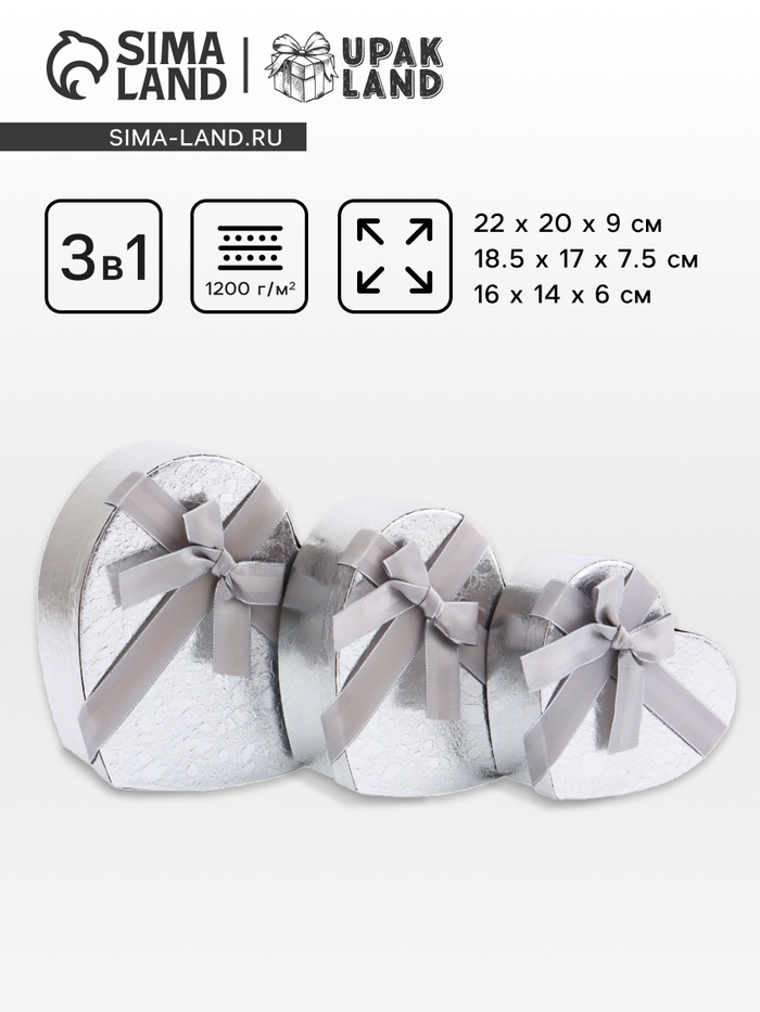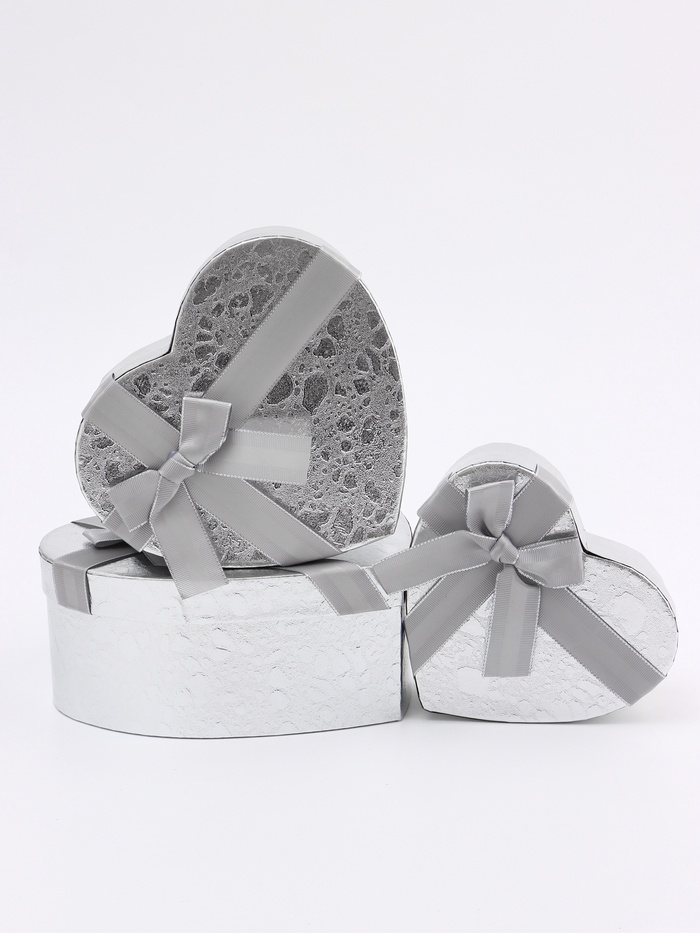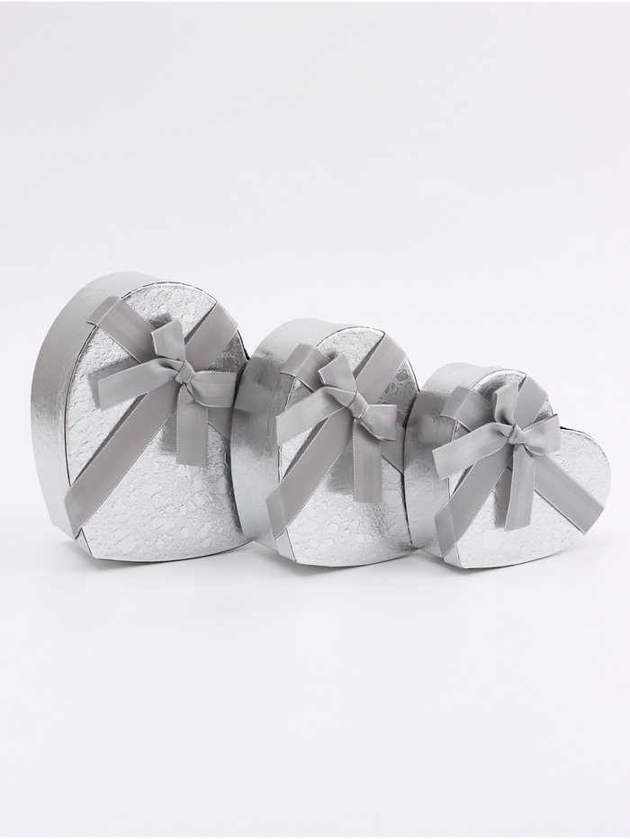 Набор подарочных коробок сердце 3 в 1, металлик с бантом, 22×20×9; 18.5×17×7.5; 16×14×6 см