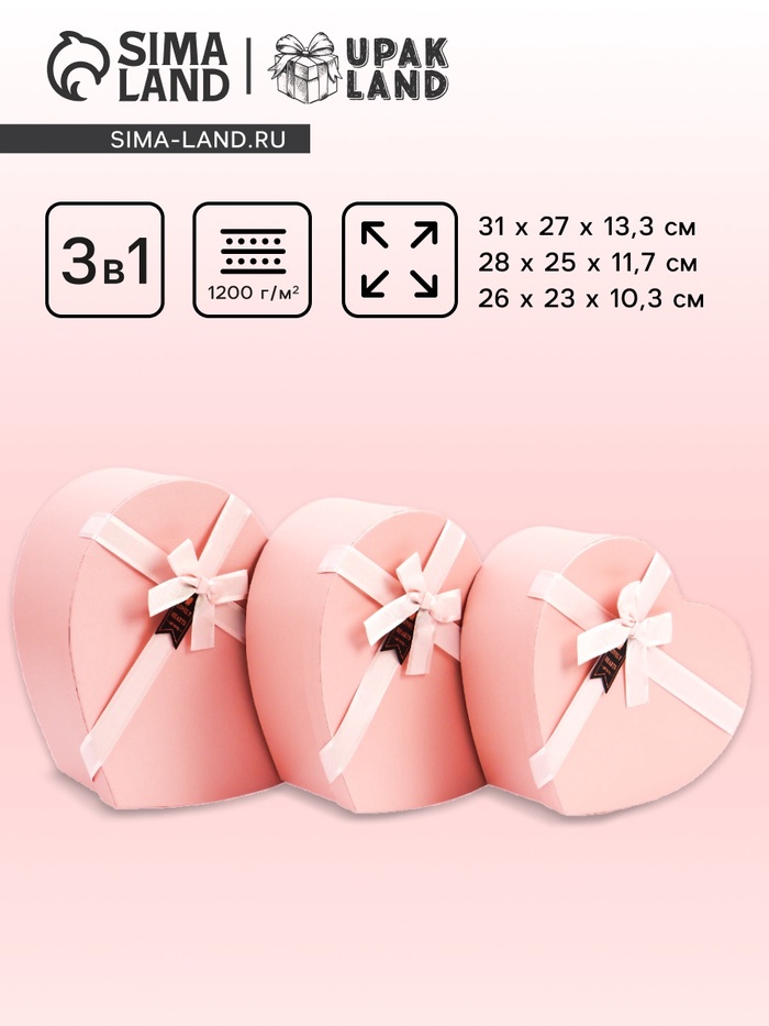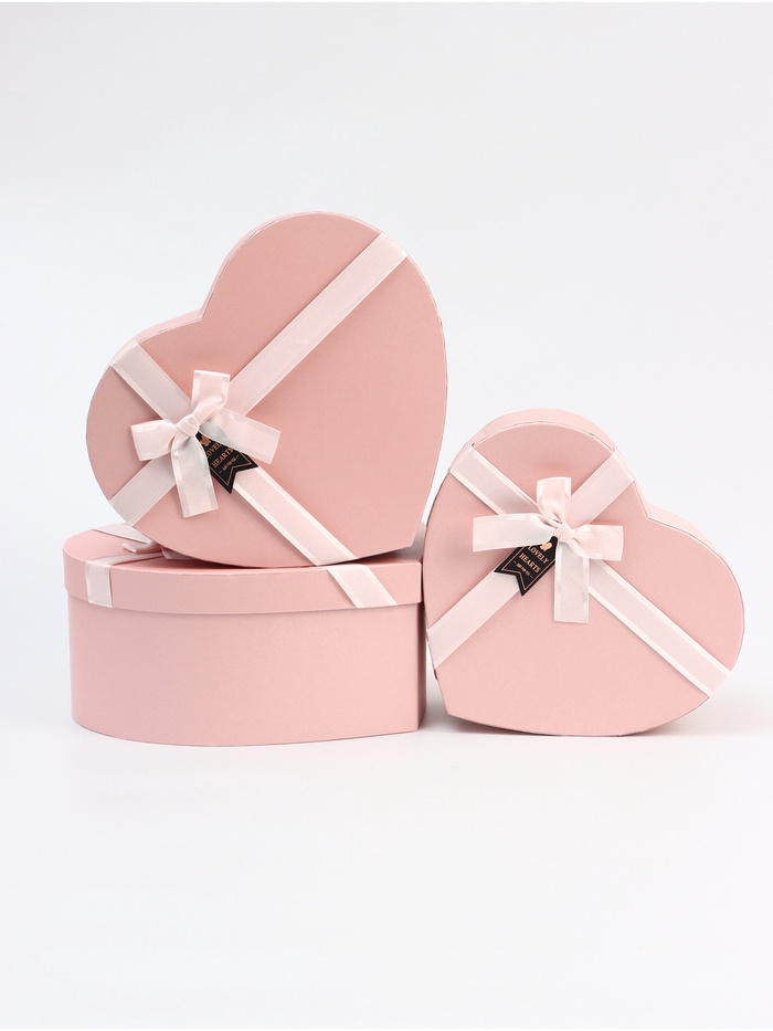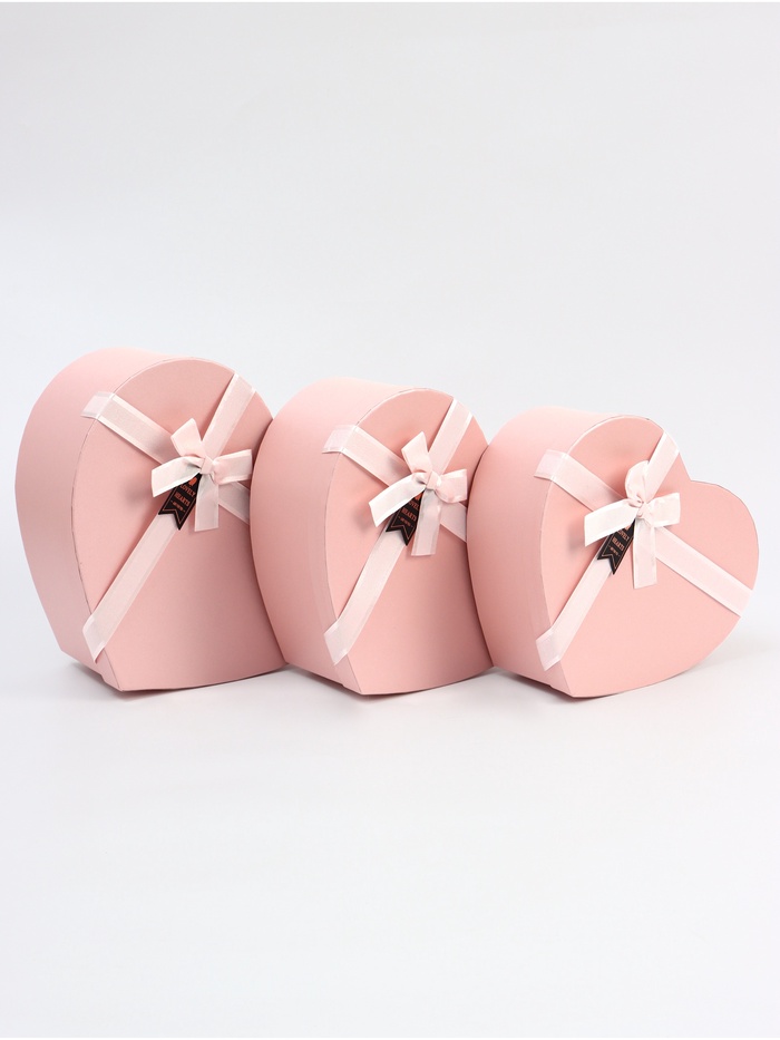 Набор подарочных коробок сердце 3 в 1, нежно-розовый, 31×27×13.3; 28×25×11.7; 26×23×10.3 см