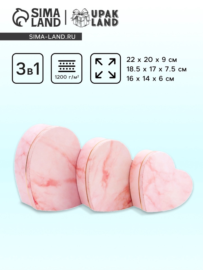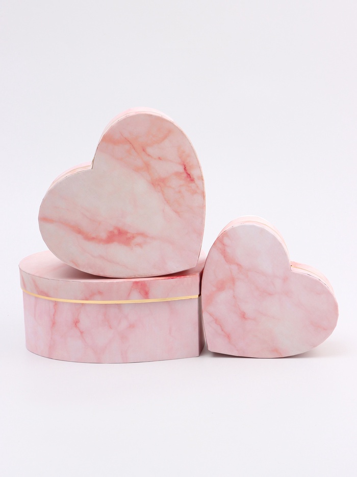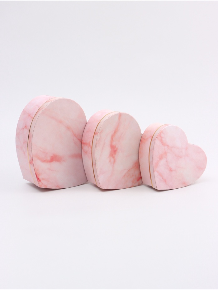 Набор подарочных коробок сердце 3 в 1, розовый мрамор, 22×20×9; 18.5×17×7.5; 16×14×6 см