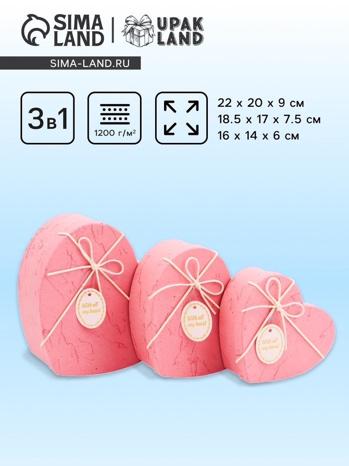 Набор коробок «Сердца» в трёх размерах — идеальный выбор для хранения и презентации ваших любимых вещей.