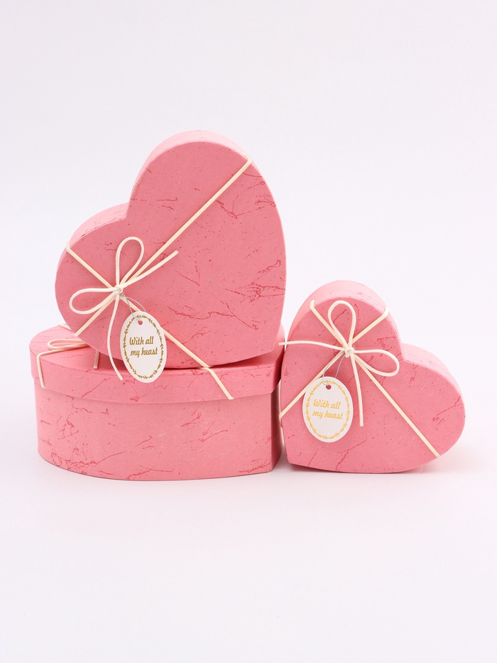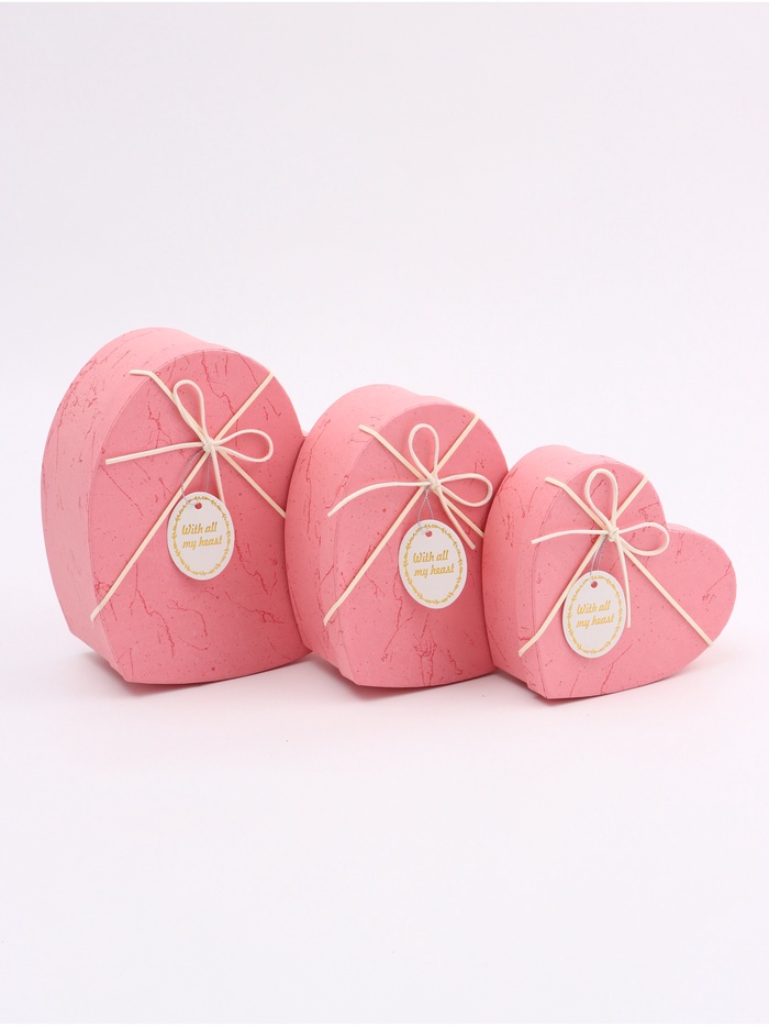 Набор подарочных коробок сердце 3 в 1, розовый с акцентом, 22×20×9; 18.5×17×7.5; 16×14×6 см