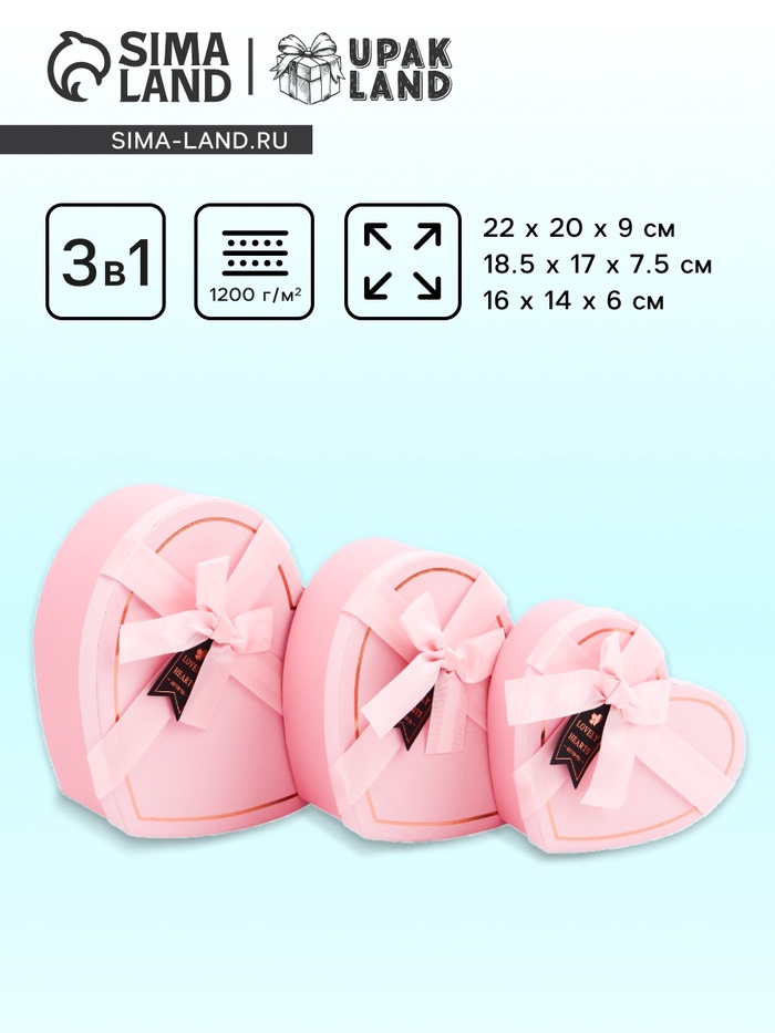 Набор коробок «Сердца» в трёх размерах — идеальный выбор для хранения и презентации ваших любимых вещей.