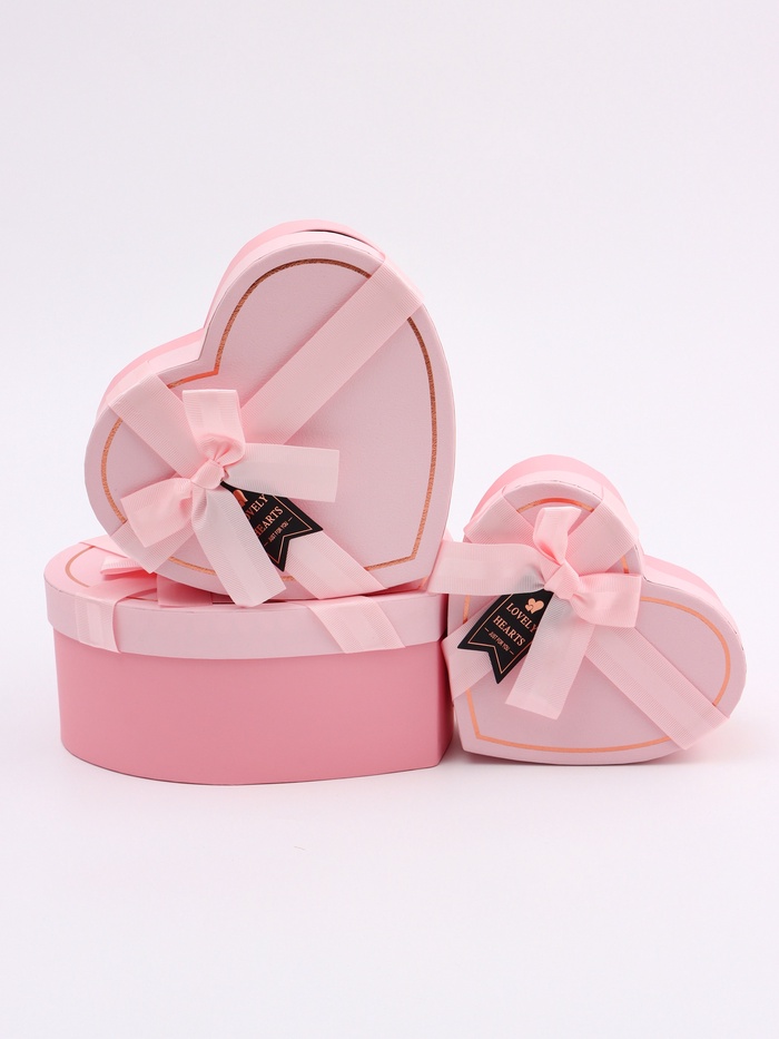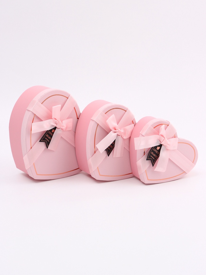 Набор подарочных коробок сердце 3 в 1, розовый с бантом, 22×20×9; 18.5×17×7.5; 16×14×6 см