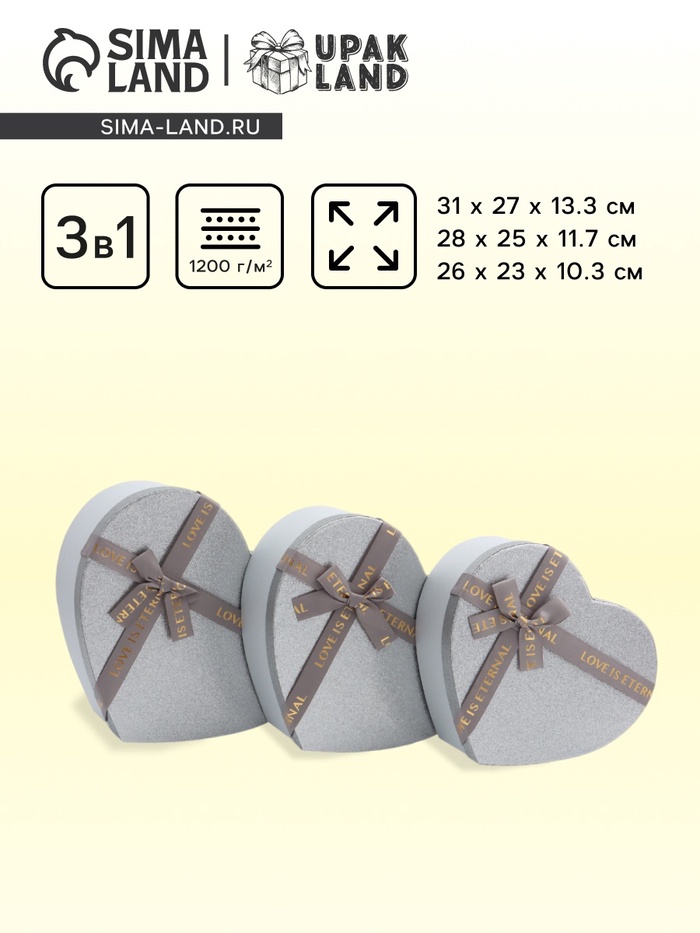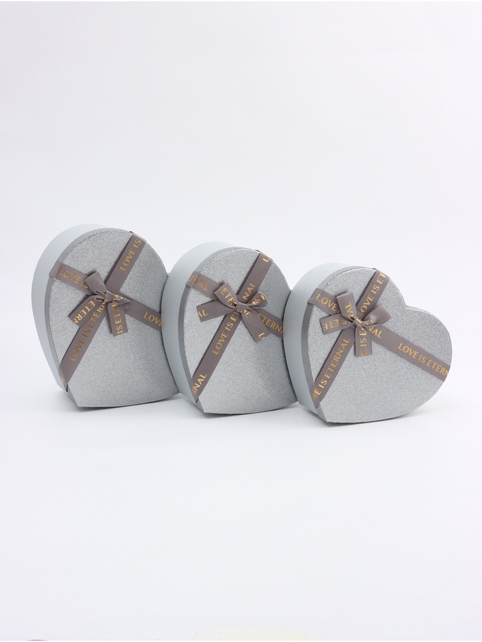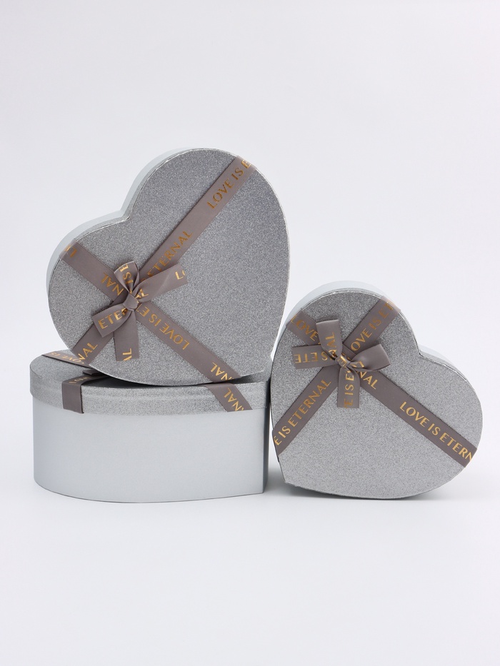 Набор подарочных коробок сердце 3 в 1, серебро с бантом «Любовь вечна», 31×27×13.3; 28×25×11.7; 26×23×10.3 см