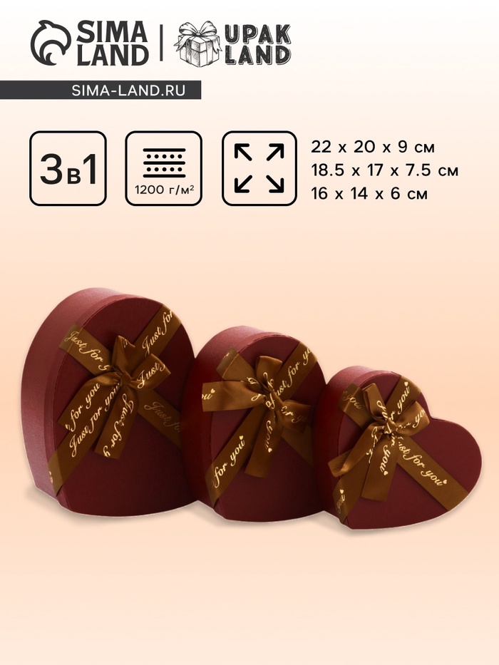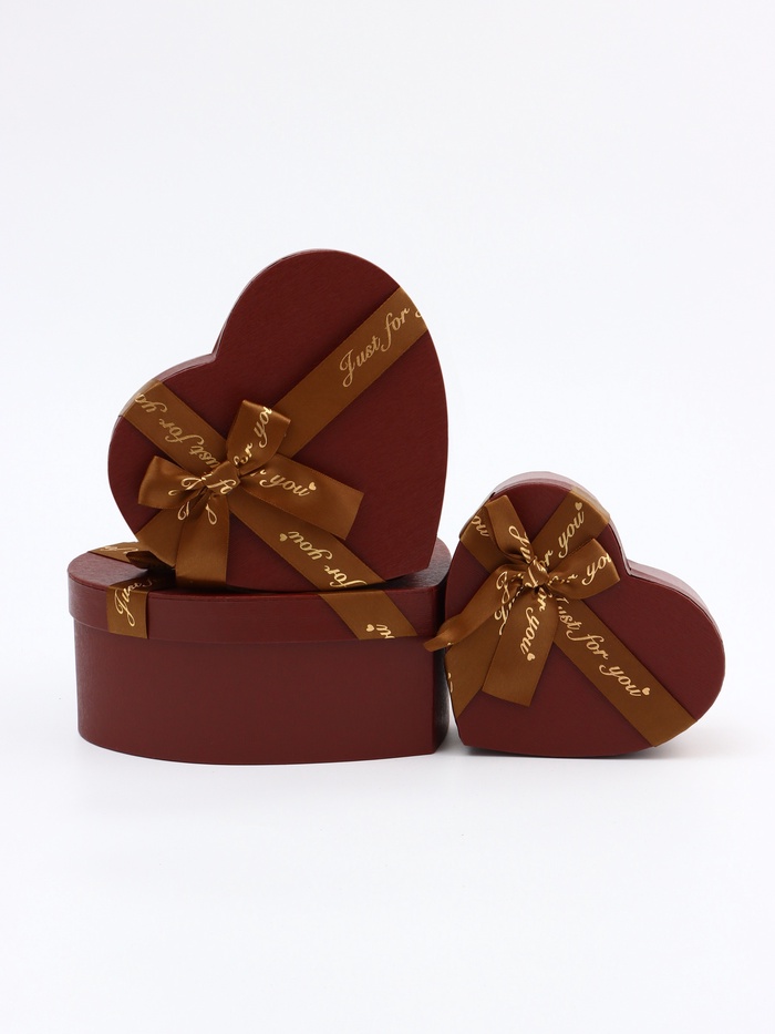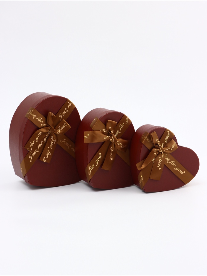 Набор подарочных коробок сердце 3 в 1, шоколадный, глянцевый с бантом «Для тебя», 22×20×9; 18.5×17×7.5; 16×14×6 см
