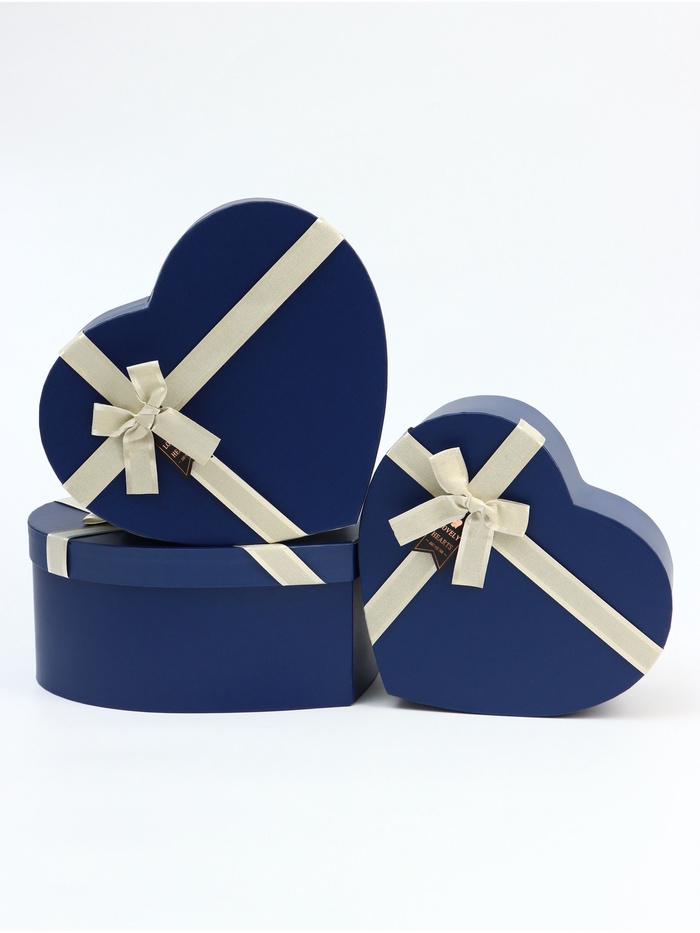 Набор подарочных коробок сердце 3 в 1, синий, 31×27×13.3; 28×25×11.7; 26×23×10.3 см