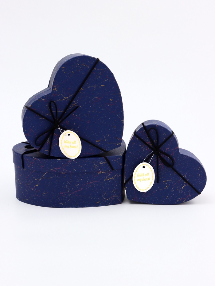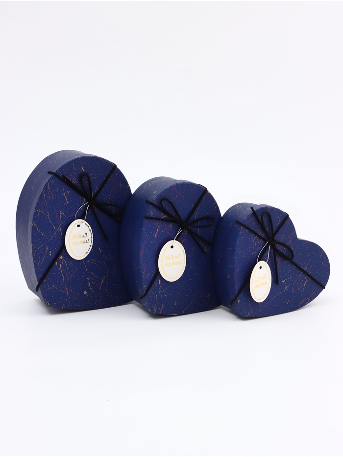 Набор подарочных коробок сердце 3 в 1, синий с акцентами, 22×20×9; 18.5×17×7.5; 16×14×6 см