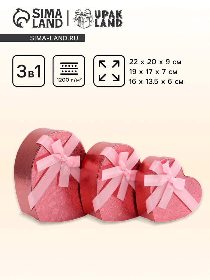 Набор коробок «Сердца» в трёх размерах — идеальный выбор для хранения и презентации ваших любимых вещей.
