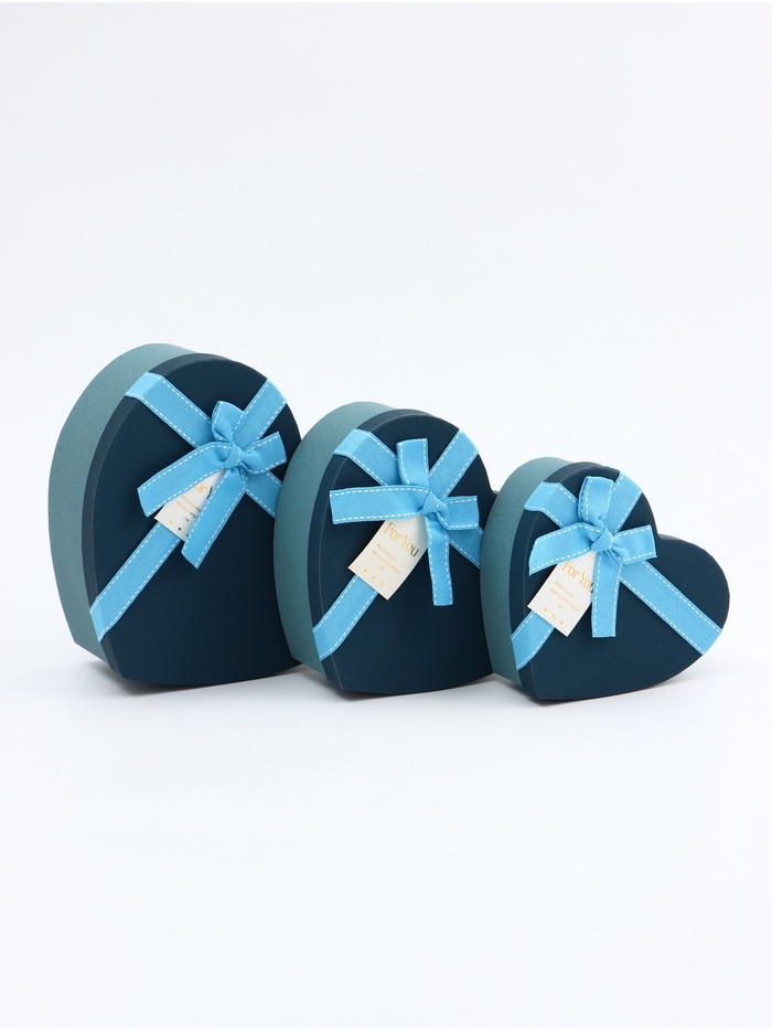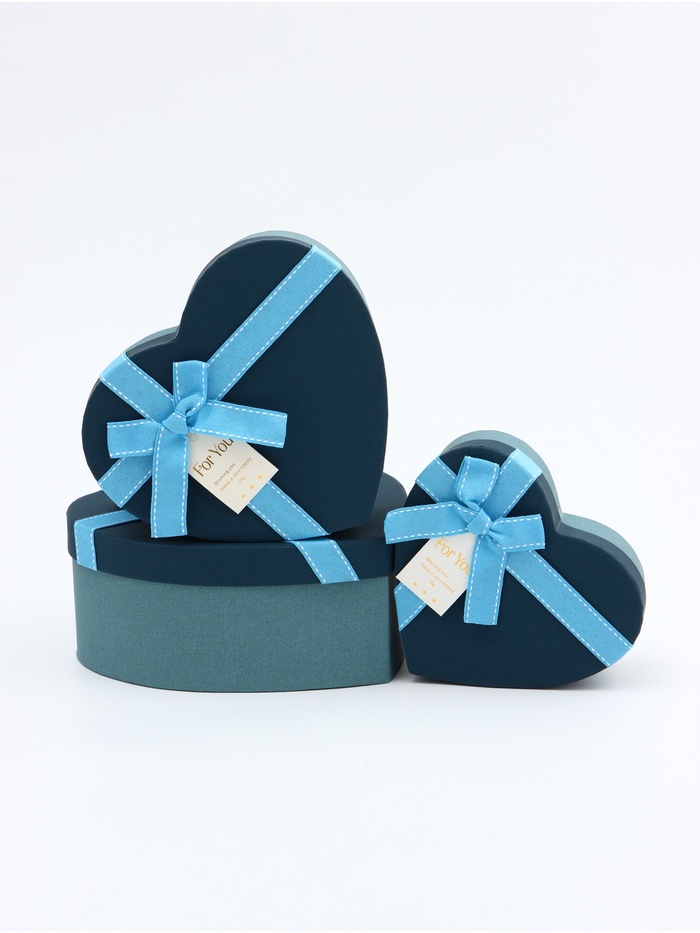 Набор подарочных коробок сердце 3 в 1, синий с бантом, 22×20×9; 18.5×17×7.5; 16×14×6 см