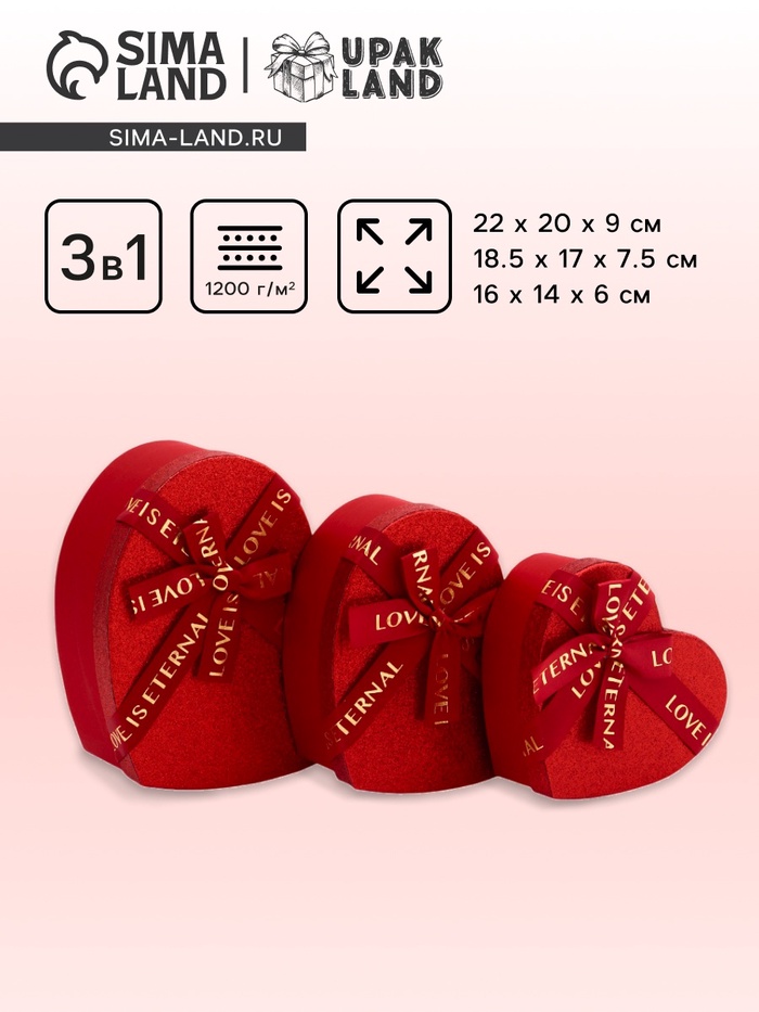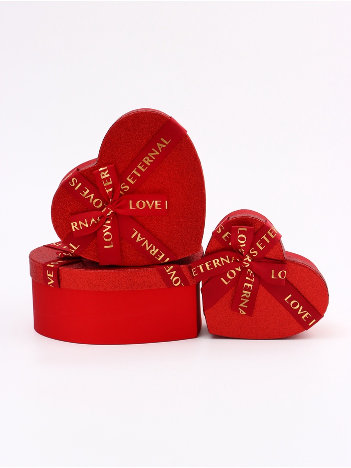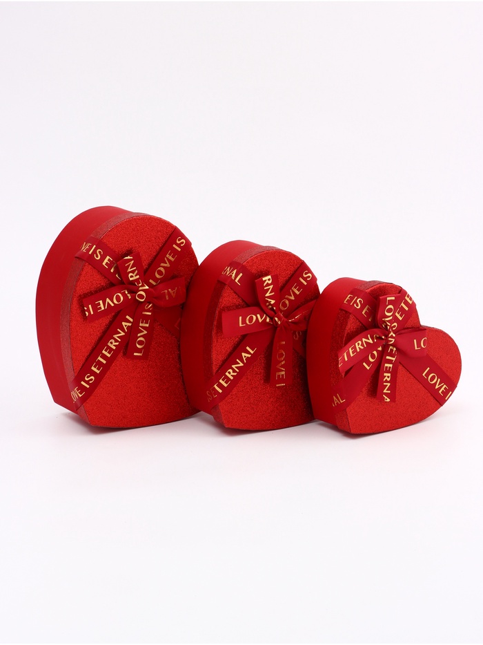 Набор подарочных коробок сердце 3 в 1, сияющий красный с бантом «Любовь вечна», 22×20×9; 18.5×17×7.5; 16×14×6 см