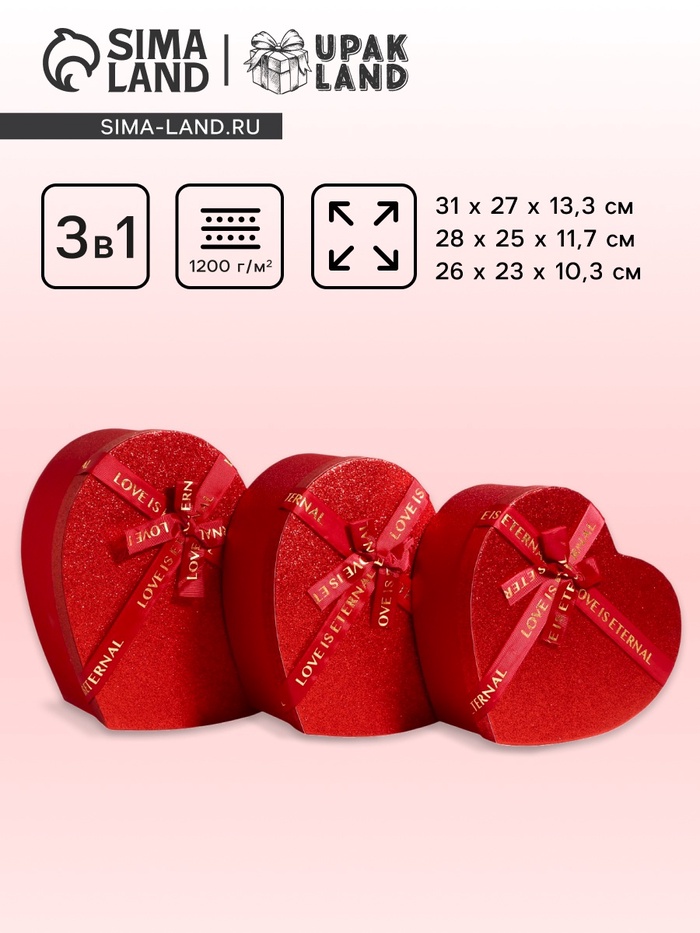 Набор коробок «Сердца» в трёх размерах — идеальный выбор для хранения и презентации ваших любимых вещей.