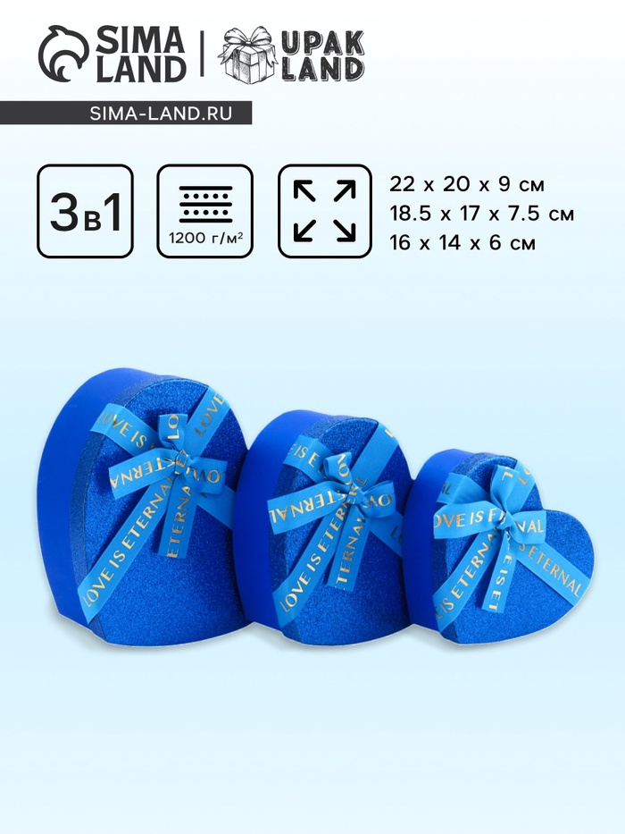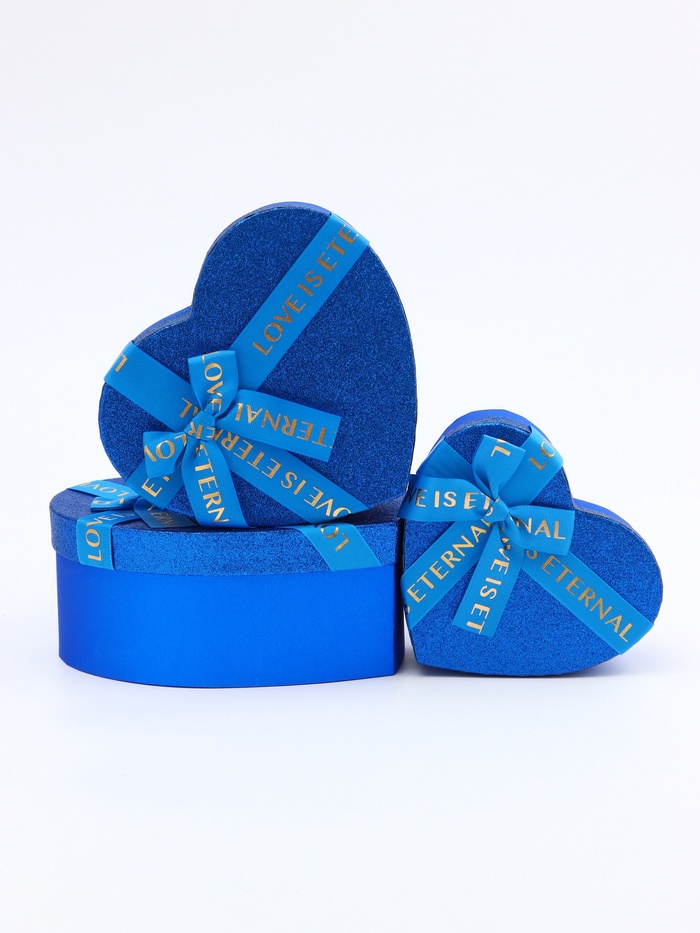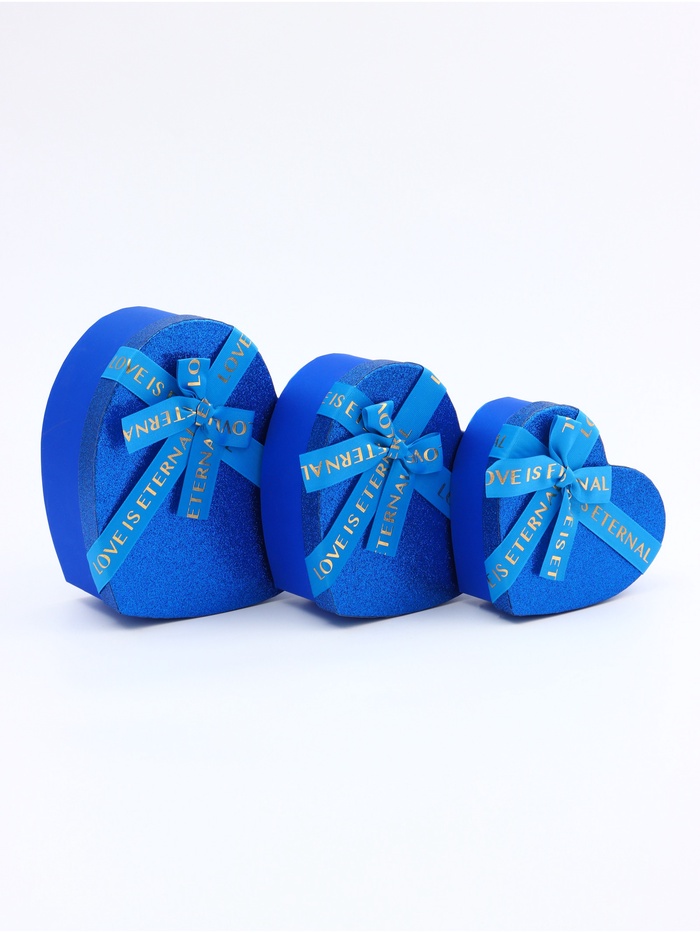 Набор подарочных коробок сердце 3 в 1, сияющий синий с бантом «Любовь вечна», 22×20×9; 18.5×17×7.5; 16×14×6 см