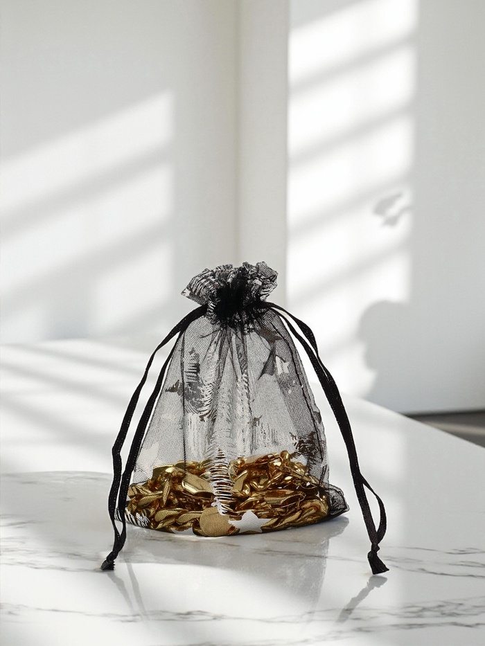 Набор подарочных мешочков 100шт. "Звёзды", 10*12 см ( + - 1 см), цвет чёрный с серебром (3503568)
