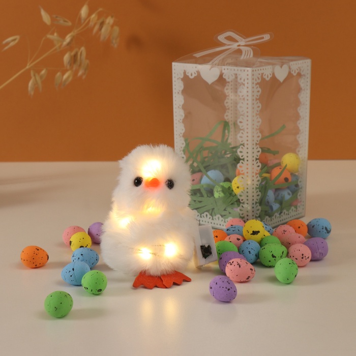 Этот набор станет запоминающимся презентом для девочек, женщин или коллекционеров. Сочетание милого цыплёнка, светящейся подсветки и декоративных яичек создаёт ощущение праздника и заботы. Подарите немного тепла и радости, выбрав этот комплект для особенного случая.