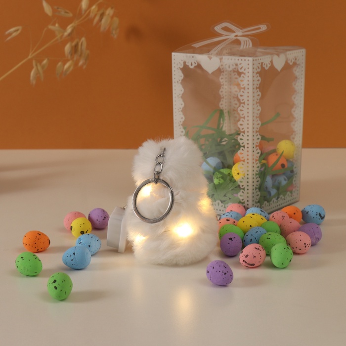 Набор подарочный «Цыплёнок белый: брелок для ключей на кольце», фигурка светящаяся, яички 50 г., роса 7×7×12 см