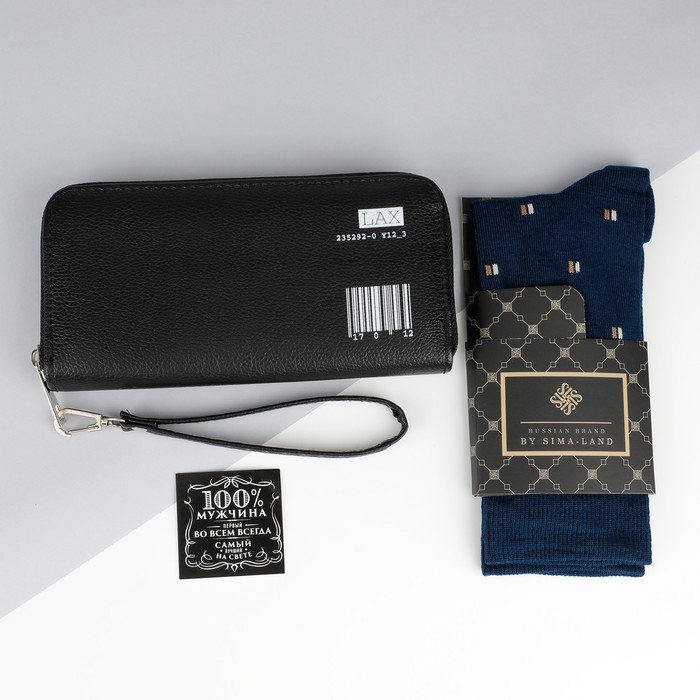 Набор подарочный, мужской «Настоящий», портмоне, носки, открытка