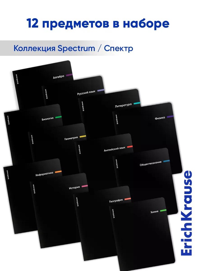 Набор предметных тетрадей ErichKrause Spectrum, 12 предметов, 48 листов, обложка из мелованного картона