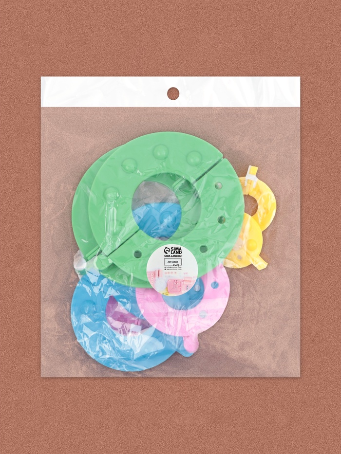 В наборе представлены кольца диаметром 9 см, 7 см, 5,5 см, 3 см.