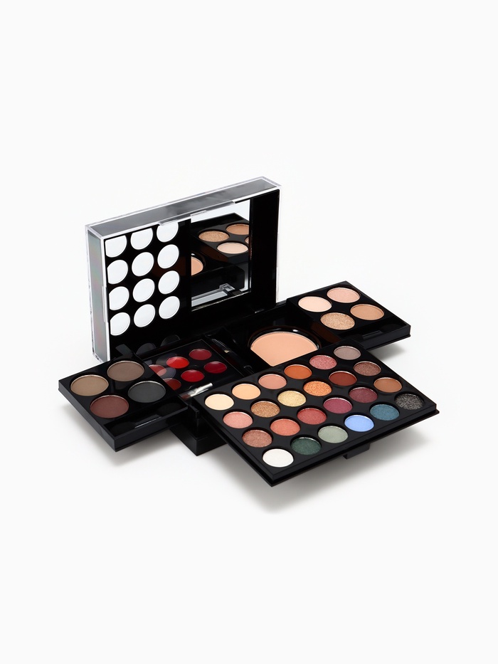 Отличный бьюти кейс на все случаи жизни. Каждая деталь этого набора декоративной косметики обладает расширенным функционалом. Например, структура и пигментация теней позволяют их использовать в качестве краски для бровей. Для прорисовки бровей отлично подойдут матовые тени.