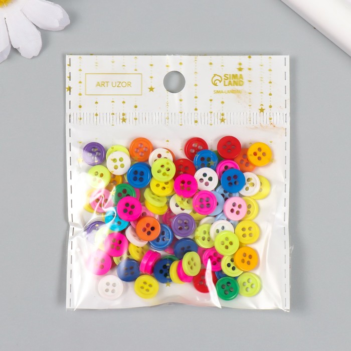 Набор пуговиц пластик "Цветная пуговка" МИКС н-р 100 шт 11,2х1,5х7 см