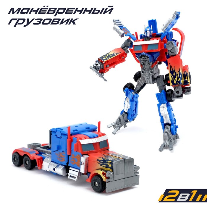 Автоботы трансформируются в скоростной автомобиль и манёвренный грузовик. Превращение происходит за 8 шагов — мальчишка без труда с этим справится.