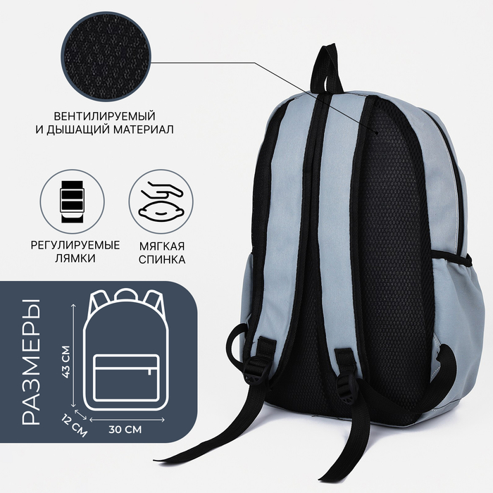 Набор: рюкзак школьный на молнии, пенал, с принтом, серый