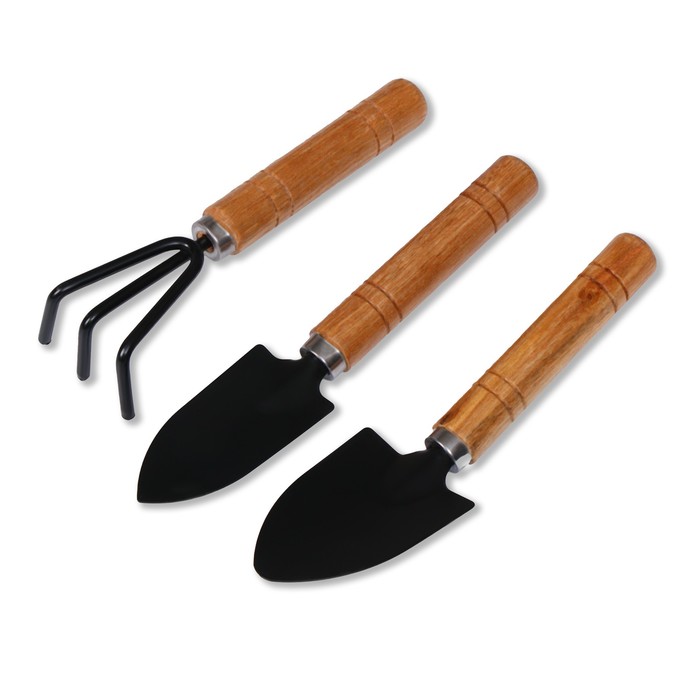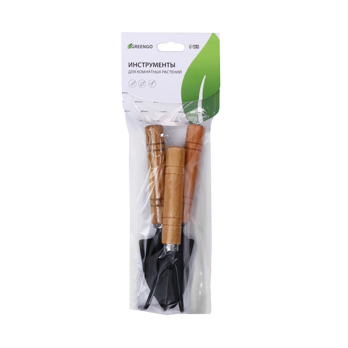 Набор садового инструмента, 3 предмета: рыхлитель, 2 совка, длина 20 см, деревянные МИКС ручки, Greengo