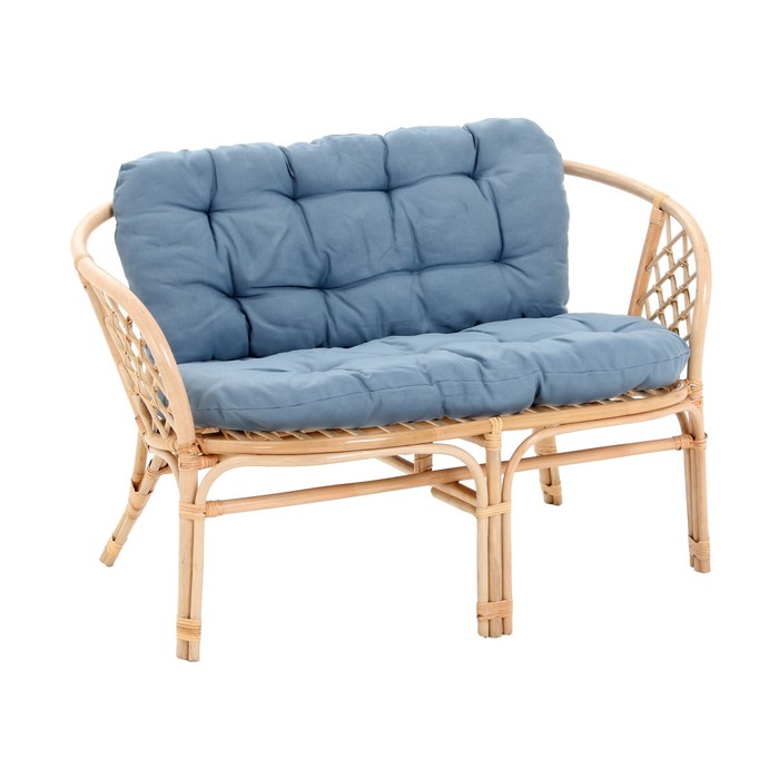Набор садовой мебели "Bagama": 2 кресла, диван, стол, ротанг светлый, подушки серо-голубые