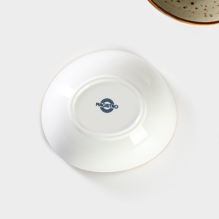 В серии Mediterana от торговой марки Magistro вы найдете всё необходимое для создания восхитительной сервировки: тарелки различного диаметра, салатники, блюда, заварочные чайники, чайные пары и, конечно же, фарфоровые кружки.
