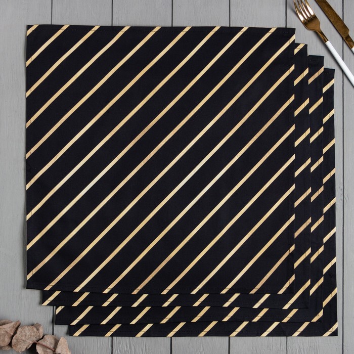 Набор салфеток Этель «Golden lines» 46×46 см - 4 шт., 100% хлопок, саржа 190 г/м²