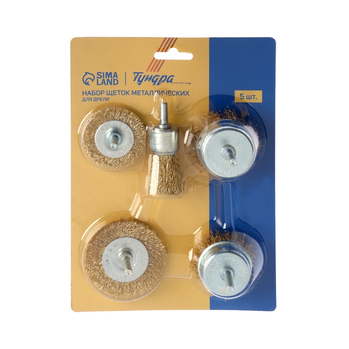 Набор щеток металлических для дрели ТУНДРА, плоские 50-75 мм, чашки 25-50-75 мм, 5 шт.