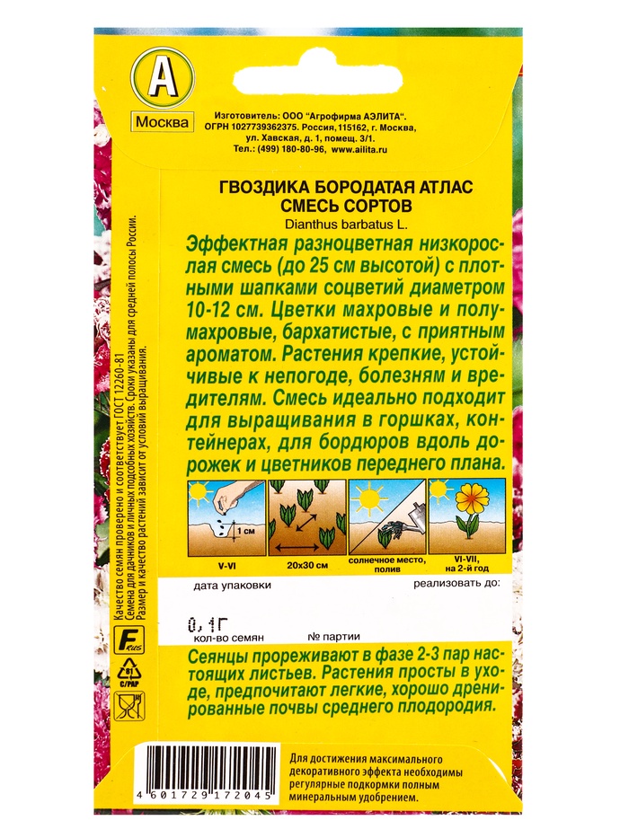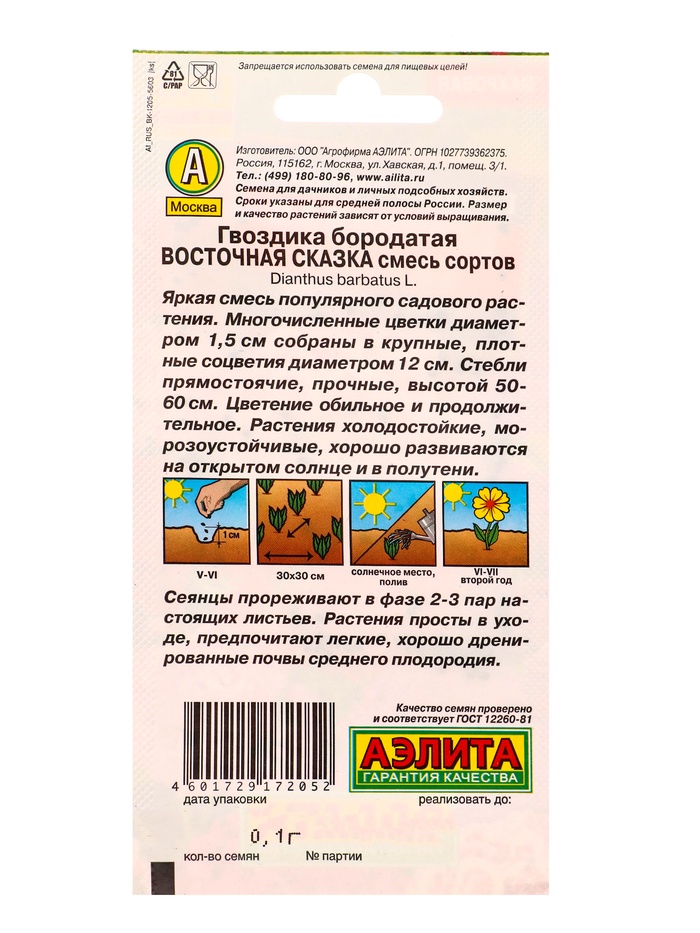 Набор Семена цветов Гвоздика турецкая многолетняя (238758319) ВБ