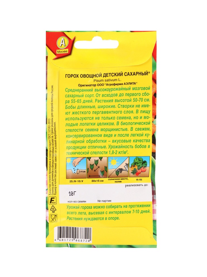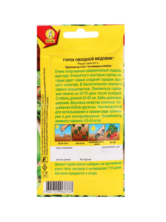 Набор "Семена Горох" (3 пакетов) Детский сахарный, Жемчужина, Медовик "Аэлита" (934494110) ОЗ 1094