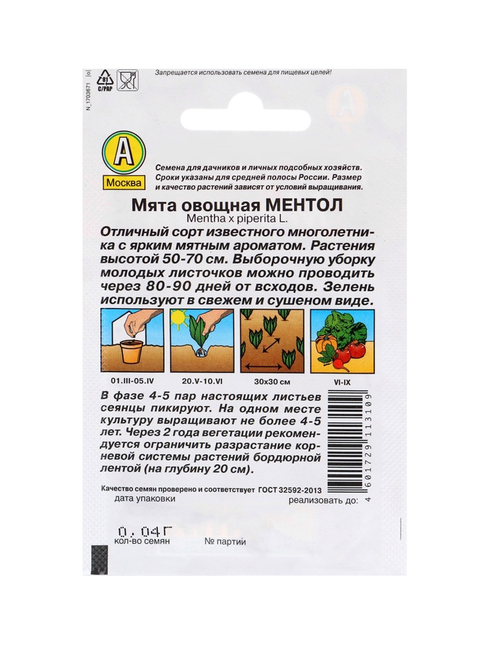 Набор Семена Мята овощная Ментол (1762022027) ОЗ