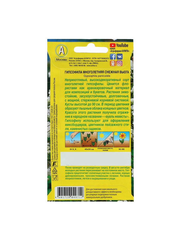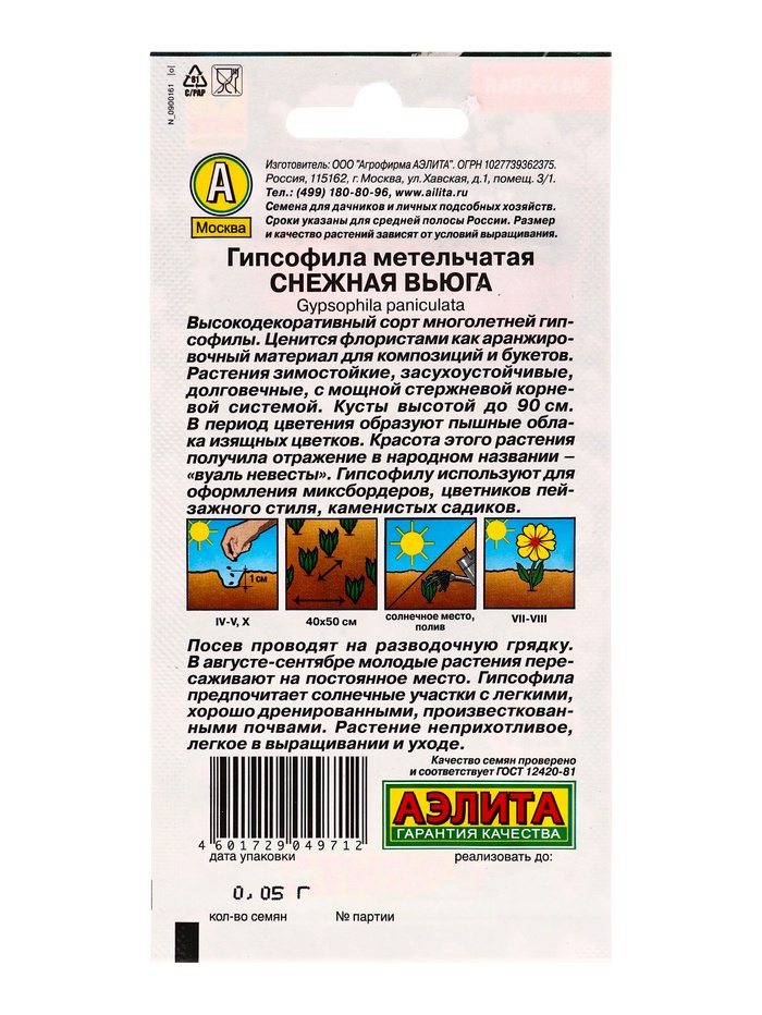 Набор семян Гипсофила "Снежная вьюга", 5 шт.