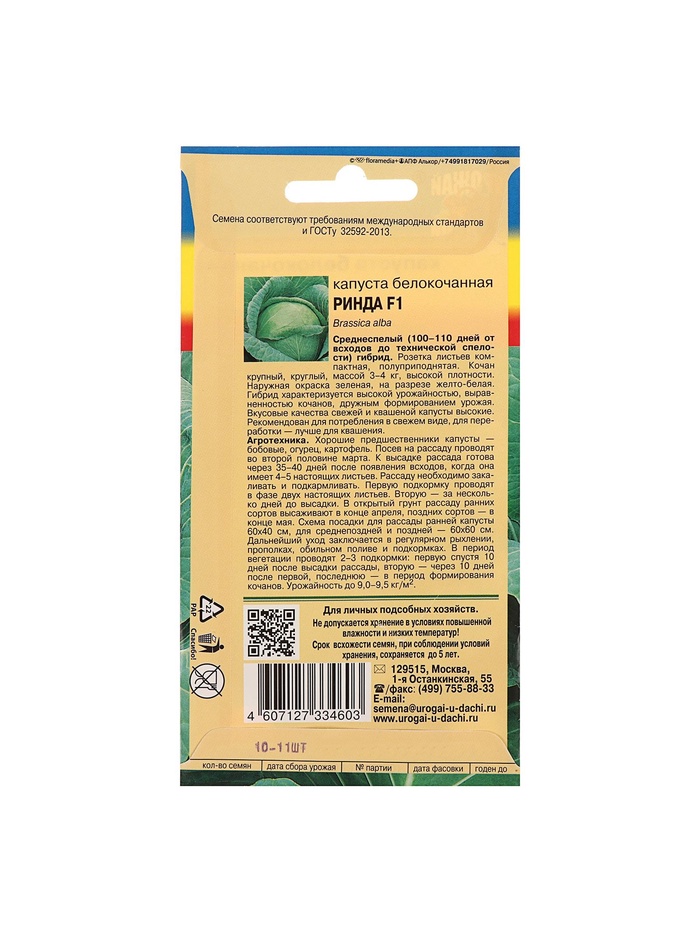 Набор семян Капуста белокочаная "Ринда", 5 шт.