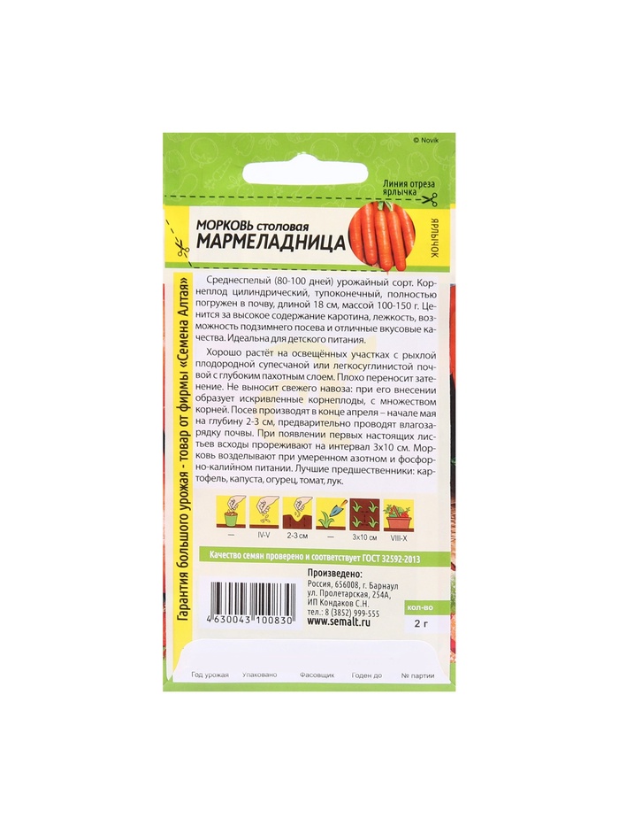 Набор семян Морковь "Мармеладница", цп, 5 шт.