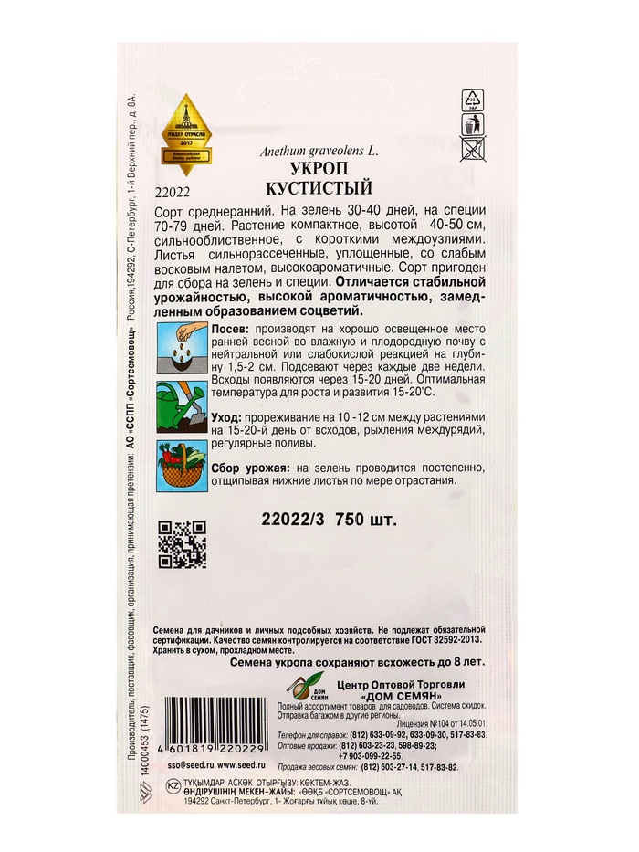 Набор семян Укроп «Кустистый», суперароматный и мегаурожайный, 750 семян