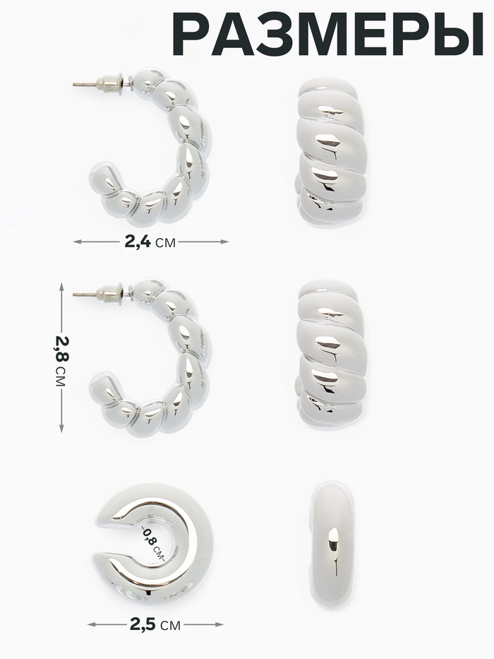 - Минималистичный дизайн: элегантные линии и серебристый цвет делают украшения универсальными, идеально подходящими к любому наряду.