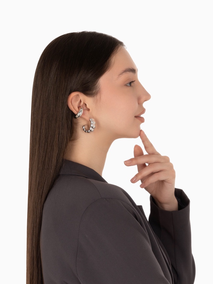 Откройте для себя изысканность и грацию с набором серьг и каффов, который добавит особую нотку в ваш образ. Серебристые украшения идеально подойдут для тех, кто ценит минимализм и элегантность в деталях. Этот комплект станет верным спутником как в повседневной жизни, так и в праздничных моментах.